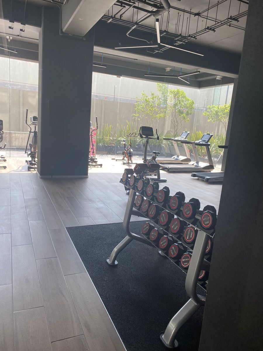 Uma vaga de estacionamento.El departamento tiene dos recamaras con closet, dos baños completos, cocina integral con estufa incluida, centro de lavado, sala comedor , gas natural, boiler de paso, piso de duela, interiores en blanco, lámparas led, no tiene balcón y la vista es lateral con vista parcial a la Ciudad por ambos lados. Se encuentra en el piso 19.