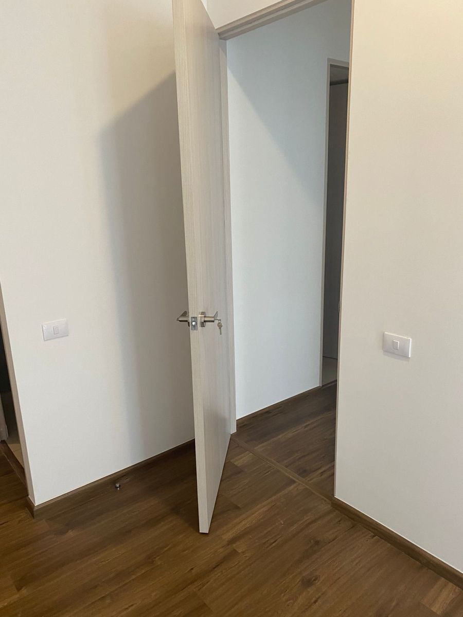 O apartamento tem dois quartos com armário, dois banheiros completos, cozinha integrada com fogão incluído, centro de lavanderia, sala de estar e jantar, gás natural, aquecedor de passagem, piso de madeira, interiores brancos, lâmpadas LED, não tem varanda e a vista é lateral com vista parcial da cidade de ambos os lados. Está localizado no 19º andar.