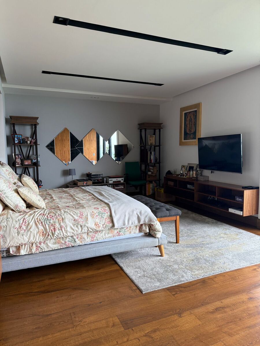 O apartamento possui 457 metros quadrados de espaço habitável muito bem distribuído em sala de estar, sala de jantar, cozinha integrada com área de café da manhã, um lavabo para visitas e terraço.