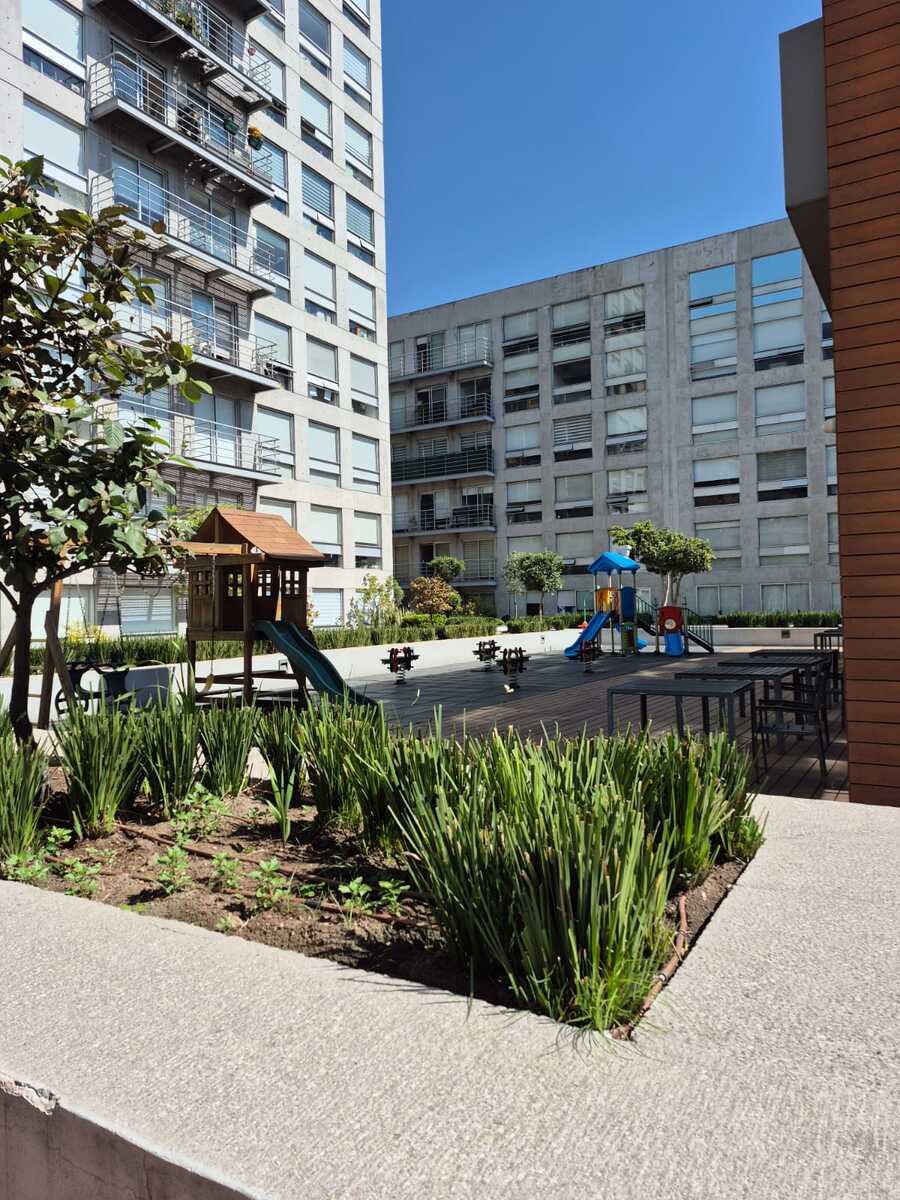 Departamento en venta. Condominio Puerta Jardin. 4 Años de antigüedad, Consta 3 Recámaras (La principal con Vestidor ) 2 Closet, 2 Baños completos, Cocina Integral con Barra comedor, Sala, Cuarto de lavado. BODEGA Tiene 87.00 M2 de Superficie. 2 Estacionamientos, Edificio de Amenidades con; Alberca con vestidores, Gimnasio, Baños de servicio, Sala de Cine, con Baños de servicio, Salas de Negocios con Baños de servicio. Cafetería, Jardines y Juegos Infantiles. El conjunto esta construido en un terreno de 11.4 Hectáreas y Se tiene Planta de luz propia y cisternas.