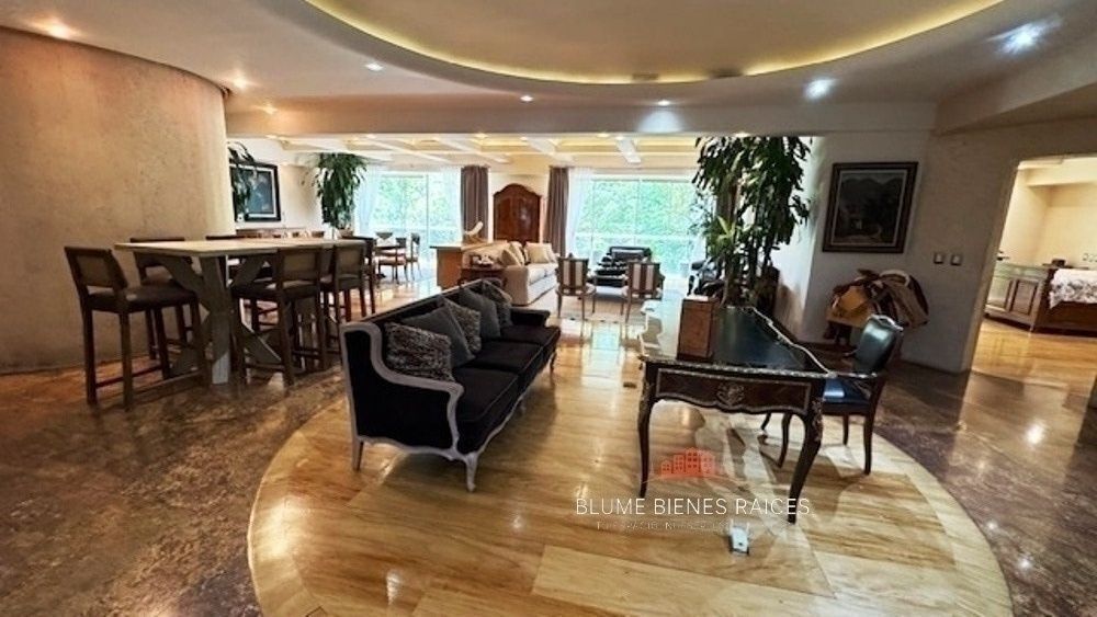 **Preço sujeito a alteração sem aviso prévio**Excelente Departamento estilo contemporáneo en renta, estilo único con finos acabados. Se renta sin muebles o semiamueblado. Se distribuye cómodamente en en un sola planta con amplios espacios. La sala comedor te permite crear diferentes ambientes para disfrutar de momentos únicos, agradable cantina empotrada que se puede ocultar, balcón a todo lo largo de la estancia y de la recamara principal, con hermosa vista arbolada, con ventanales de piso a techo que le permite entrar la luz del sol proporcionando una agradable iluminación, medio baño de visitas, estudio o biblioteca, amplia cocina integral equipada, con múltiples alacenas, área de lavado, cuarto de servicio con baño. Recamara principal con amplio vestidor, baño y salida a un amplio balcón con vista arbolada, segunda recamara con vestidor y baño con tina.