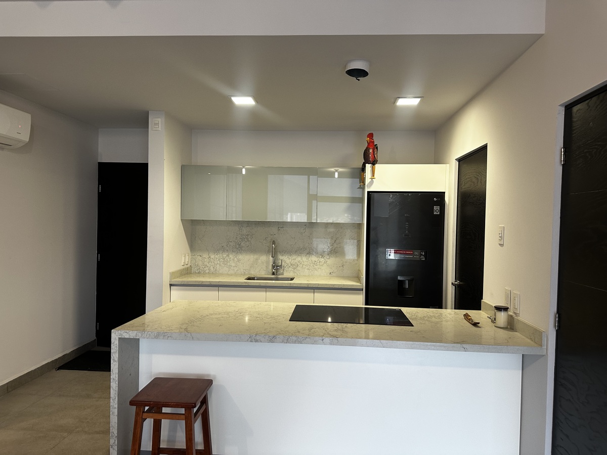 Departamento de 80 m2 , de una recámara con walk in closet , cuenta con sala , comedor , cocina equipada , con un baño completo , balcón del área social y recámara , área para centro de lavado.