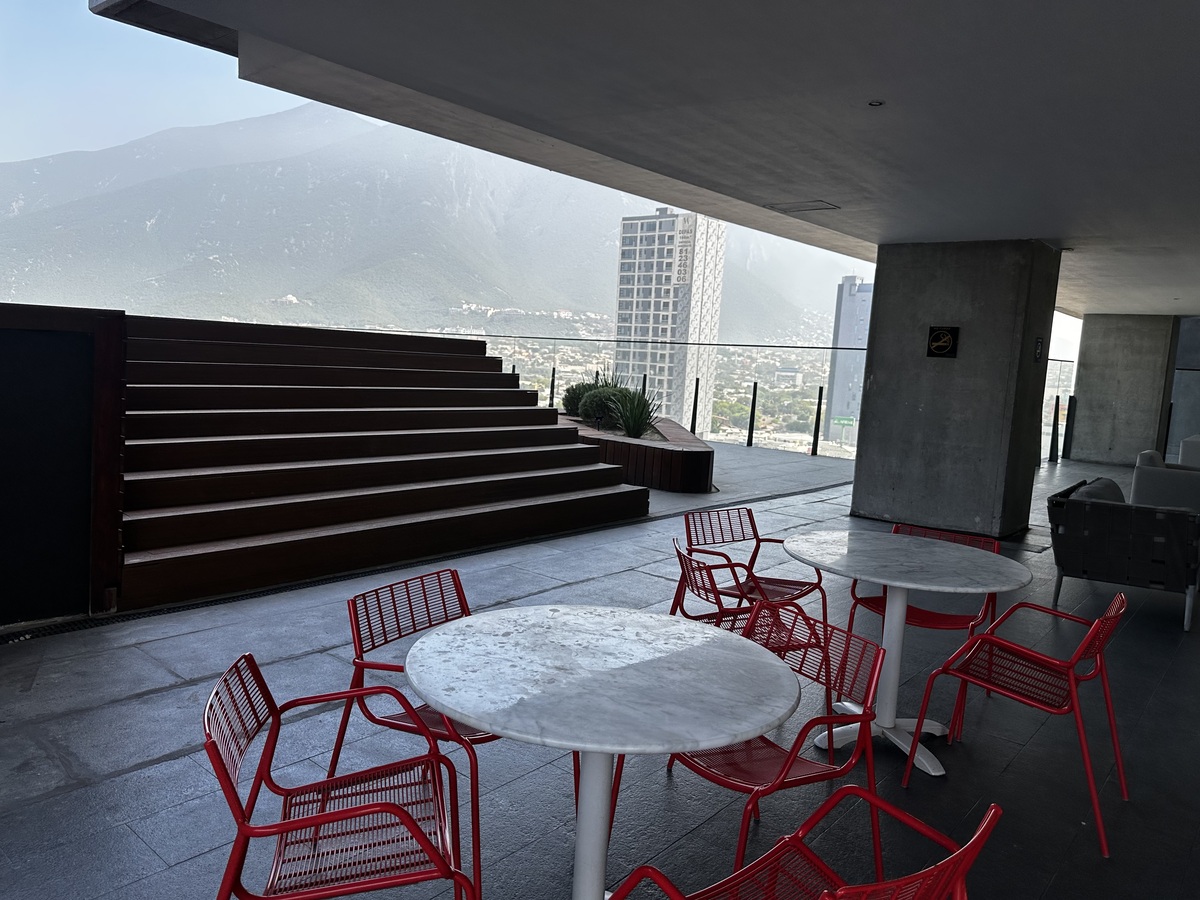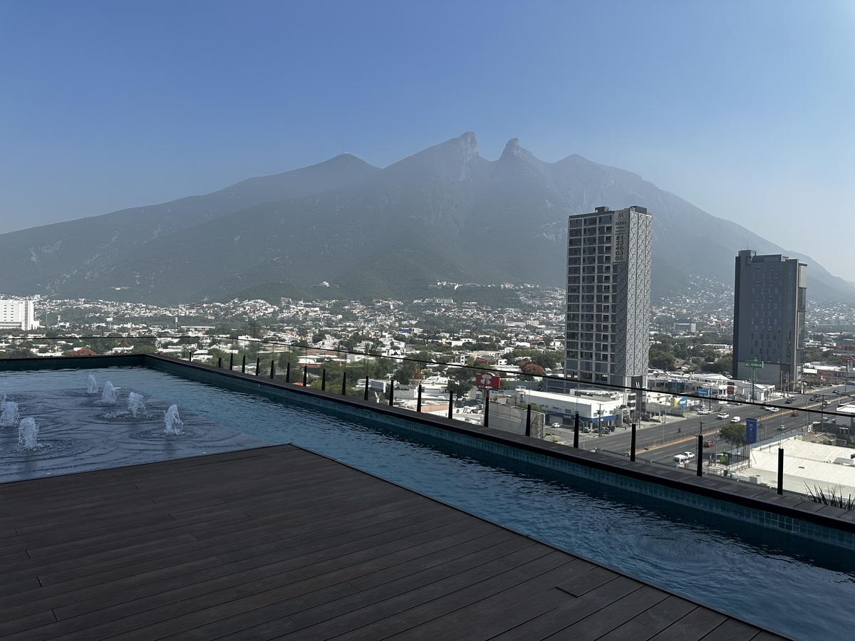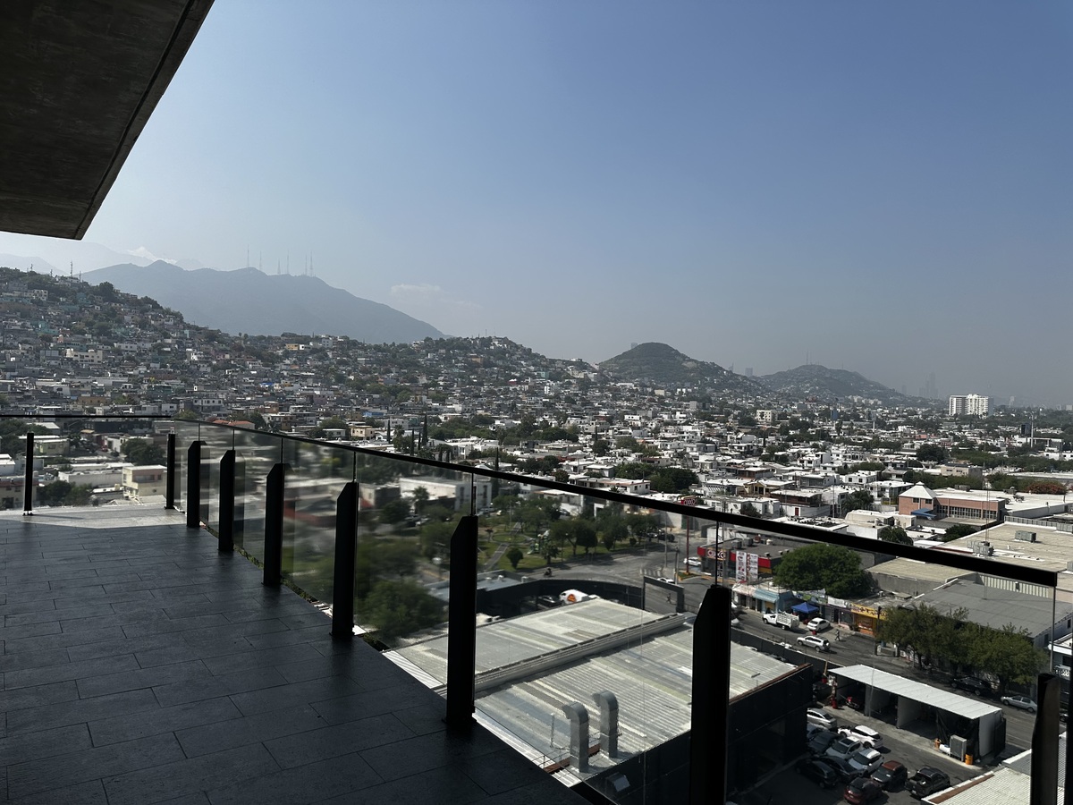 Cuenta con amenidades como, alberca con vista al cerro de la silla, area de asador .Salitas en área social en terraza , gimnasio, salón de eventos, estacionamiento y vigilancia .