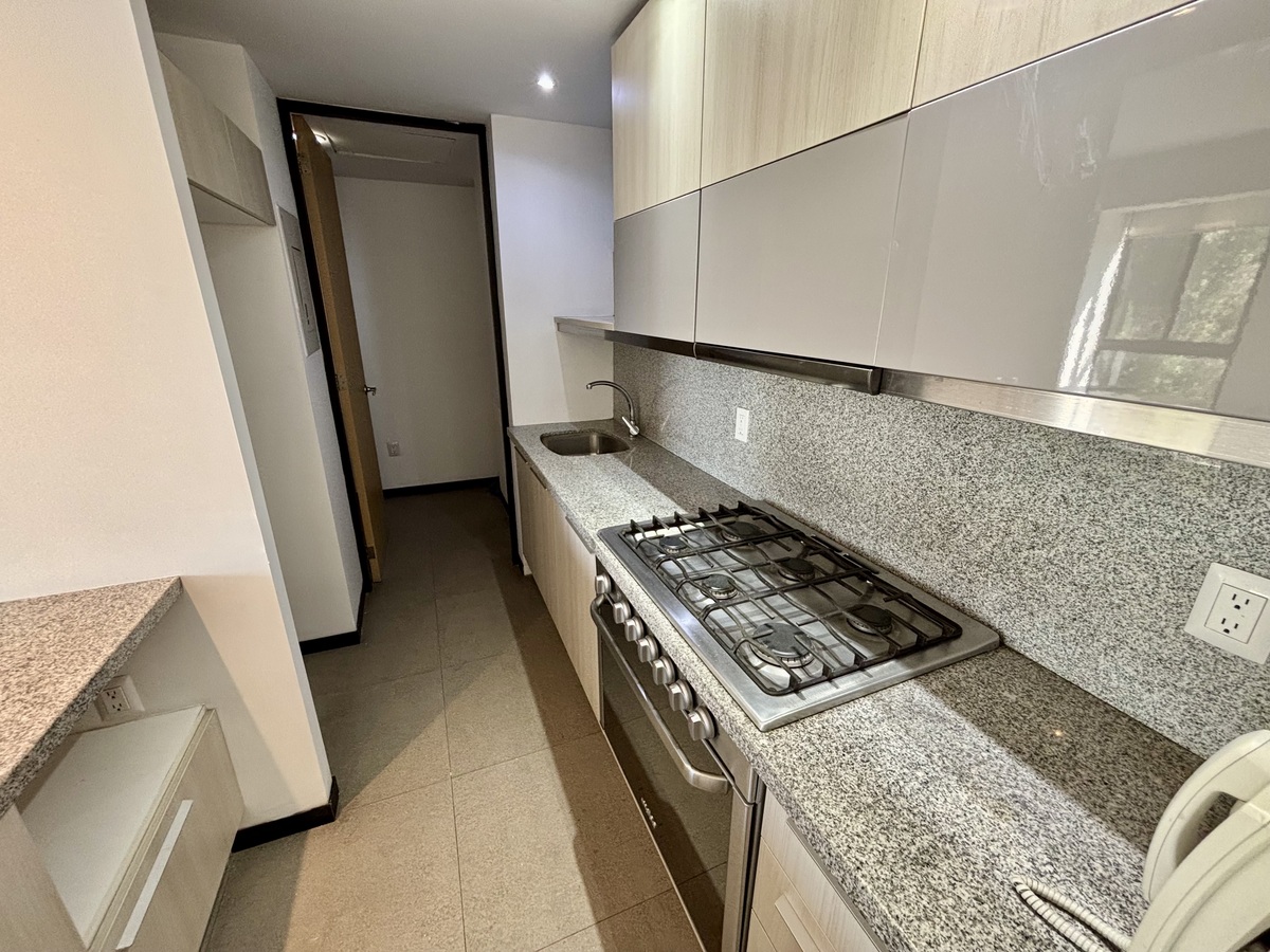 El departamento cuenta con dos recamaras, dos baños completos, su cocina integral, área de lavado y 3 cajones de estacionamiento.