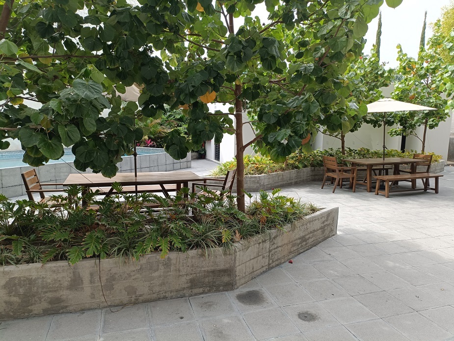 Departamento en renta en Cd. Granja en Zapopan, Jalisco, ubicado en el cuarto nivel y consta con cocina integral, área de lavado, sala comedor amplio, 1/2 baño, una recámara, vestidor y baño completo, estacionamiento para un coche, áreas comunes con alberca, baños y mesas, el edificio incluye vigilancia las 24 hrs.