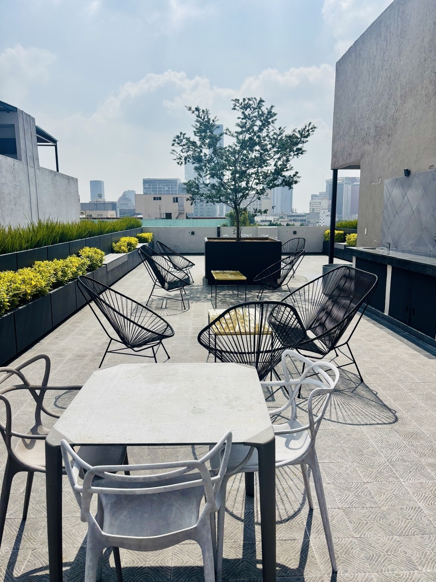 Super Apartamento para Aluguel na Col. San Rafael! Localização magnífica, central, rua tranquila, próximo a vias rápidas de comunicação, escolas, igrejas, parques e várias lojas. Acabamentos: Madeira engenheirada, granito, azulejo cerâmico, persianas e vidro temperado. Tamanho: 120 M2. (80 M2. habitáveis mais 40 M2. de linda e ampla terraço). Consiste em sala de estar e sala de jantar com acesso a um grande terraço, cozinha equipada, 2 quartos, o principal com banheiro completo e closet, o segundo com closet e banheiro completo que também serve como banheiro de visitas, ambos os quartos com acesso ao terraço, área de lavanderia, 1 vaga de estacionamento. Amenidades: Academia, Área de Yoga, Jardim na Cobertura, área para animais de estimação. A manutenção já está incluída no aluguel. Segurança 24 horas e CCTV. PREÇO NÃO NEGOCIÁVEL. Requisitos: 1 mês de depósito, 1 mês de aluguel, pagamento de apólice jurídica e fiador com imóvel na CDMX livre de ônus. Você tem que ver! Agende sua consulta agora!Super Departamento en Renta en Col. San Rafael! Magnifica ubicación, céntrico, calle tranquila, cercano a vías rápidas de comunicación, escuelas, iglesias, parques y comercios varios. Acabados: Madera de ingeniería, granito, loseta de cerámica, persianas y cristal templado. Const. 120 M2. (80 M2. habitables mas 40 M2. de linda y amplia terraza). Consta de sala y comedor con salida a amplia terraza, cocina equipada, 2 recamaras, la principal con baño completo y closet, la segunda con closet y baño completo que funge también como baño de visitas, ambas recamaras con salida a terraza, área de lavandería, 1 estacionamiento. Amenidades: Gimnasio, Área de Yoga, Roof Garden, área de mascotas. El mantenimiento ya esta incluido en la renta. Vigilancia 24 horas y CCTV.