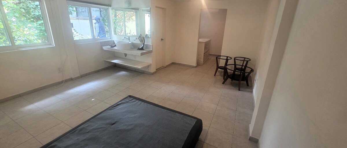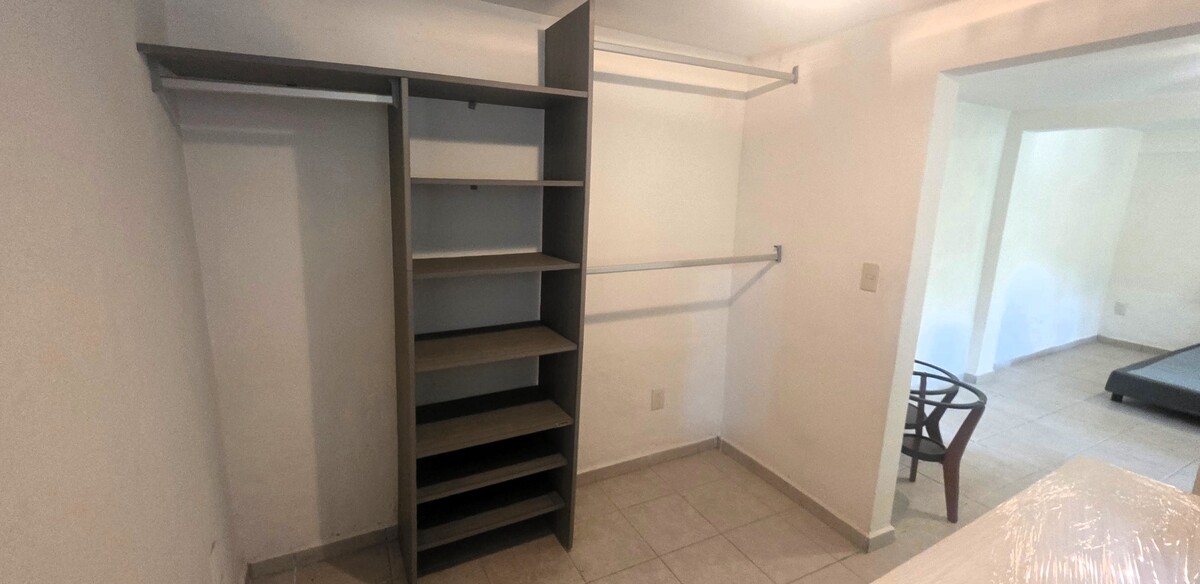 60m2, muy buena iluminación, cocina integral con refrigerador e instalación para lavadora; sala comedor muy amplia, 1 recámara con vestidor, baño completo con cancel de cristal y ventilación natural.