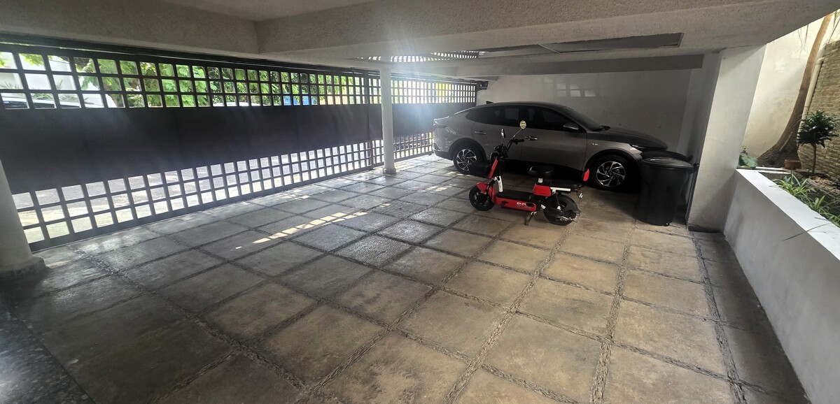 El departamento no cuenta con estacionamiento pero, como está al final de una calle privada se puede estacionar sin problema.