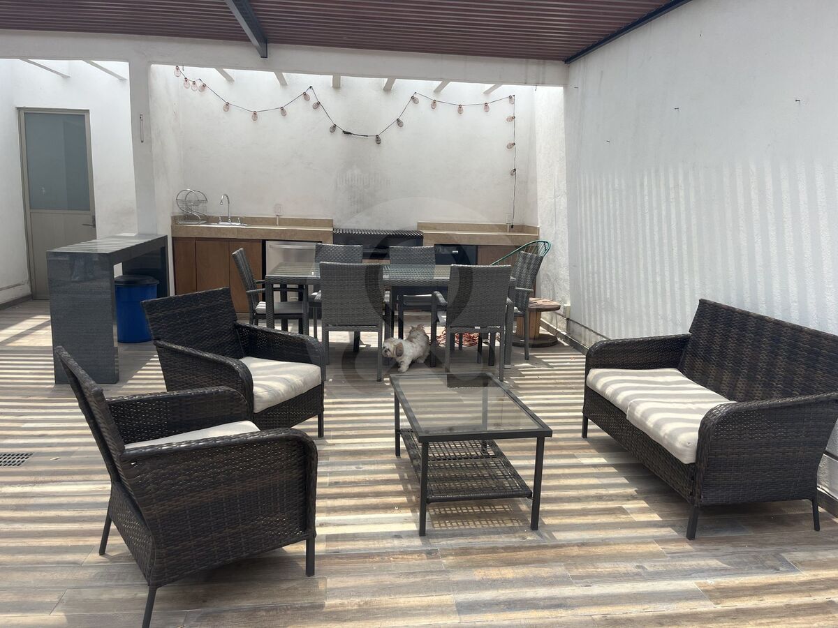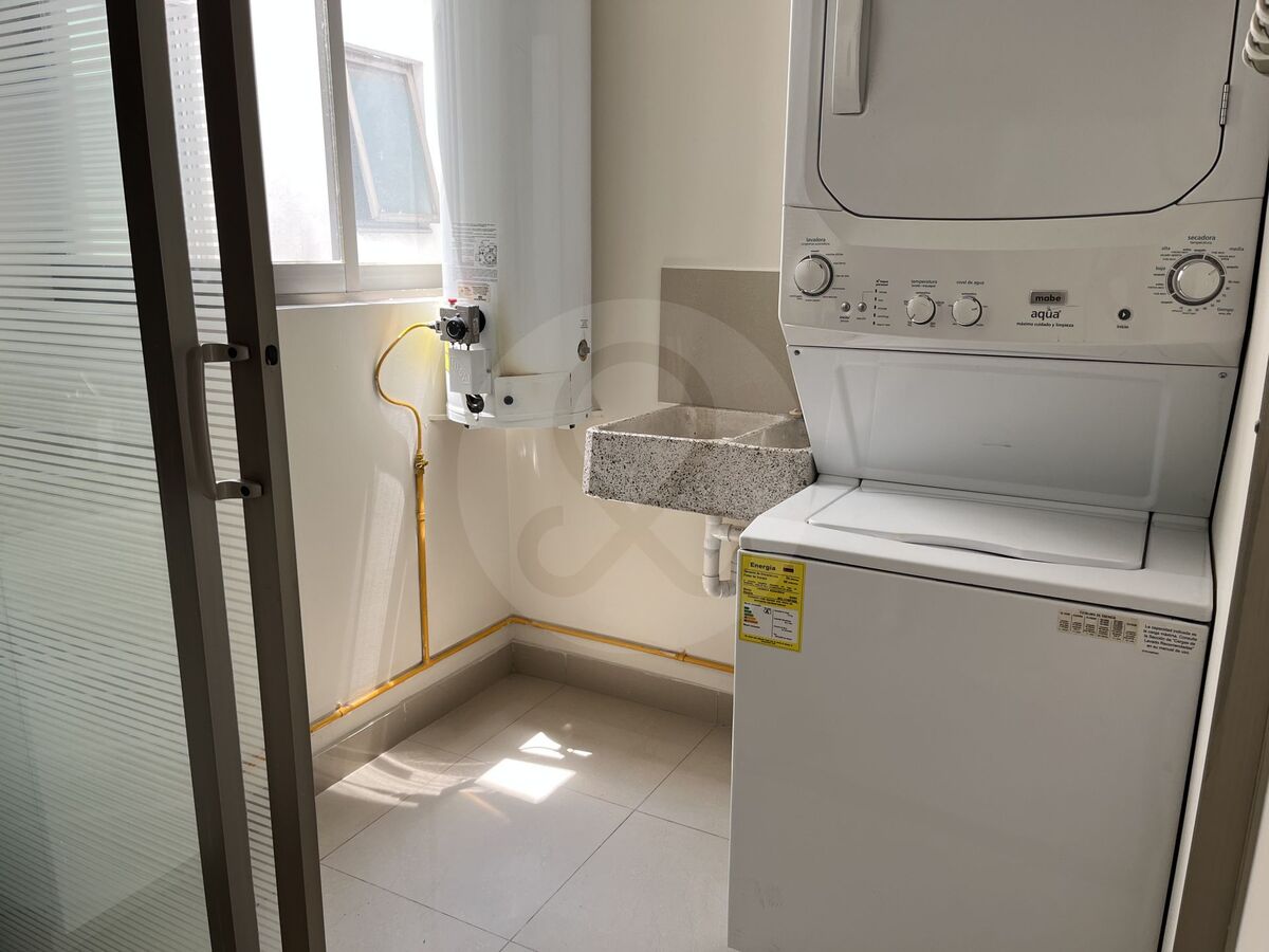Apartamento para alugar no bairro Condesa, uma das áreas mais exclusivas e cosmopolitas da capital mexicana. Trata-se de um amplo apartamento localizado no segundo andar, com uma área total de 90 metros quadrados. Possui dois quartos, dois banheiros completos e duas vagas de estacionamento. Além disso, dispõe de um jardim na cobertura privado com um banheiro e um depósito para armazenamento. Com uma distribuição funcional e espaços bem iluminados, este apartamento é ideal para quem busca conforto e praticidade em um ambiente urbano de alta demanda. O preço do aluguel é de 35.000 pesos mexicanos, manutenção incluída.Departamento en renta en la colonia Condesa, una de las zonas más exclusivas y cosmopolitas de la capital mexicana. Se trata de un amplio departamento ubicado en el segundo piso, con una superficie total de 90 metros cuadrados. Cuenta con dos cuartos, dos baños completos, y dos lugares de estacionamiento. Además, dispone de un roof garden privado con medio baño y bodega para almacenamiento. Con una distribución funcional y espacios bien iluminados, este departamento es ideal para quienes buscan comodidad y practicidad en un entorno urbano y de alta demanda. El precio de renta es de 35,000 pesos mexicanos.mantenimiento incluido