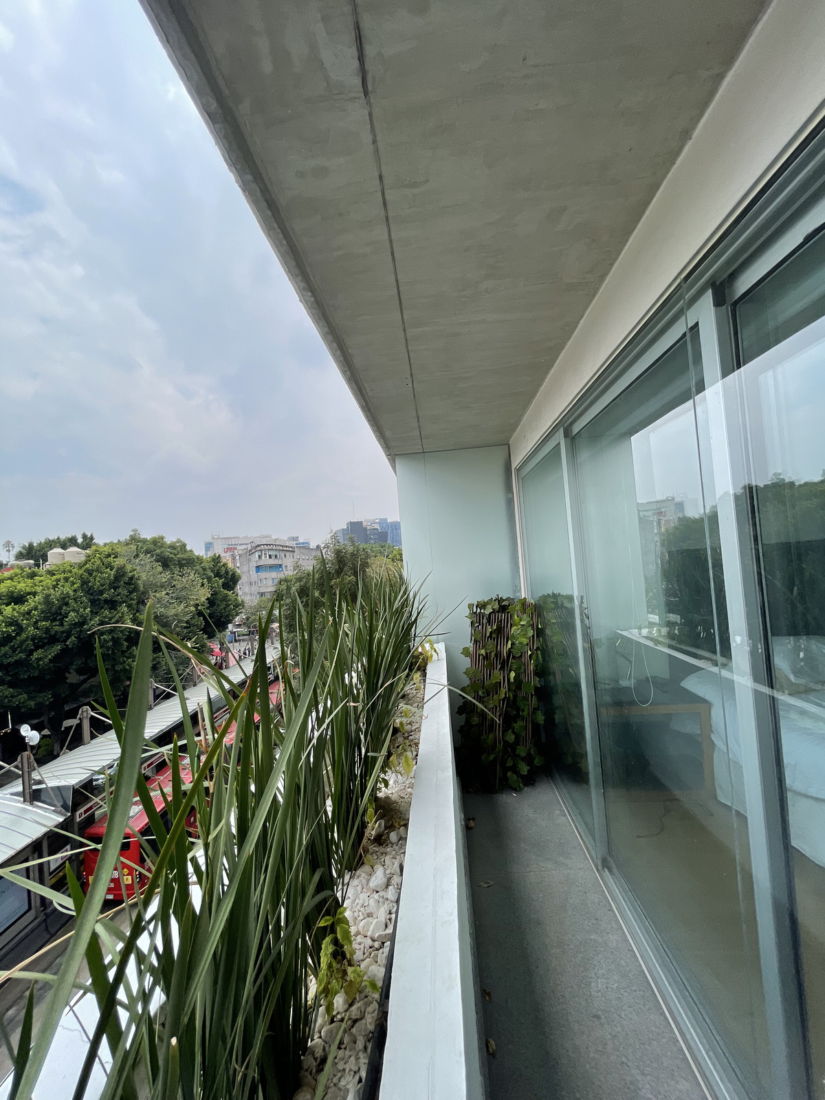Si bien está sobre la Av. Insurgentes Sur, es un departamento silencioso. El balcón abarca desde la sala hasta la recámara principal, creando un ambiente luminoso y acogedor. Cuenta con aire acondicionado central y vidrios antiruido.
