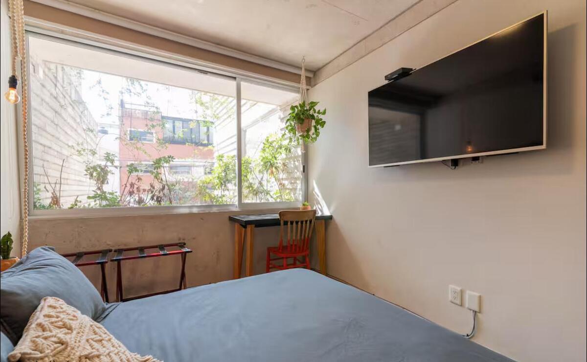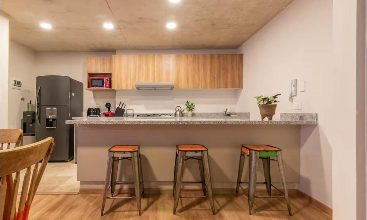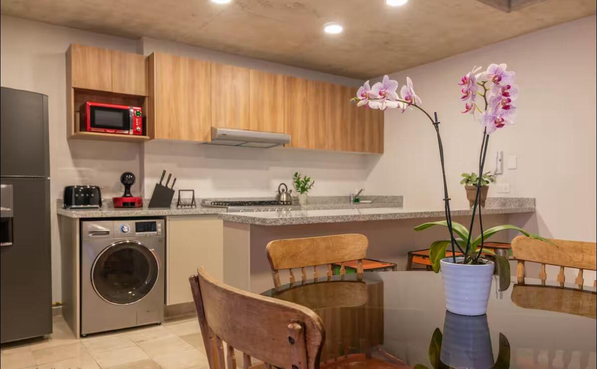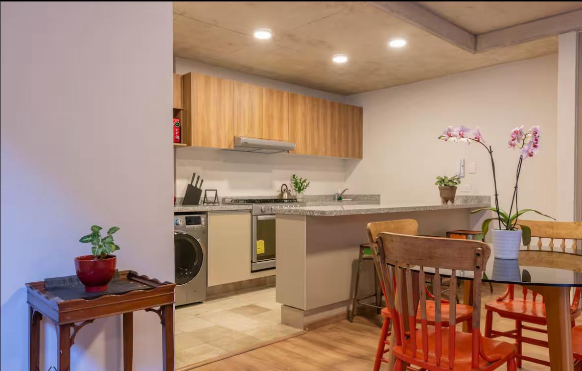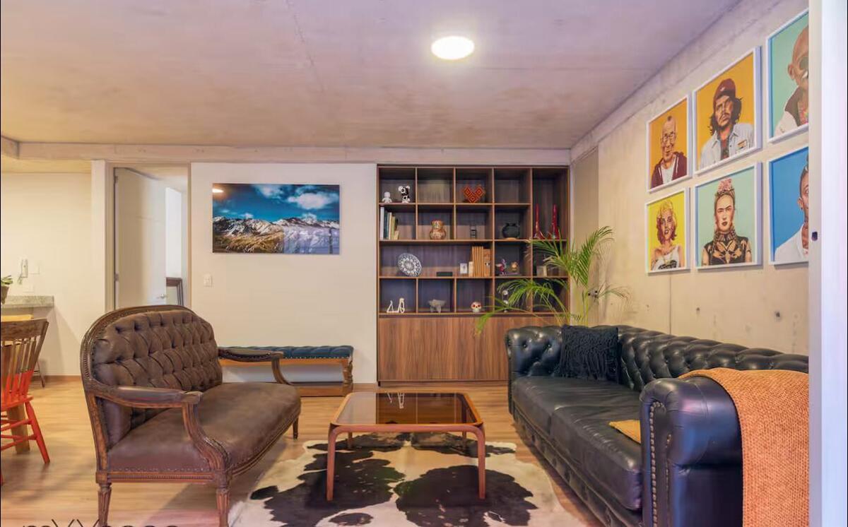 Precioso apartamento mobiliado que consiste em um quarto, sala, sala de jantar, um banheiro completo, cozinha totalmente equipada com tudo o que é necessário para preparar todo tipo de alimentos, estacionamento com elevador de carros, elevador e está localizado no coração do bairro Narvarte.