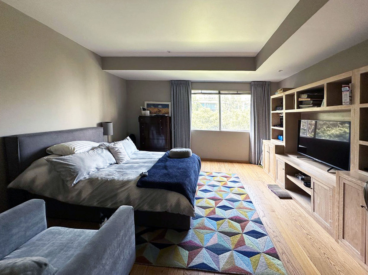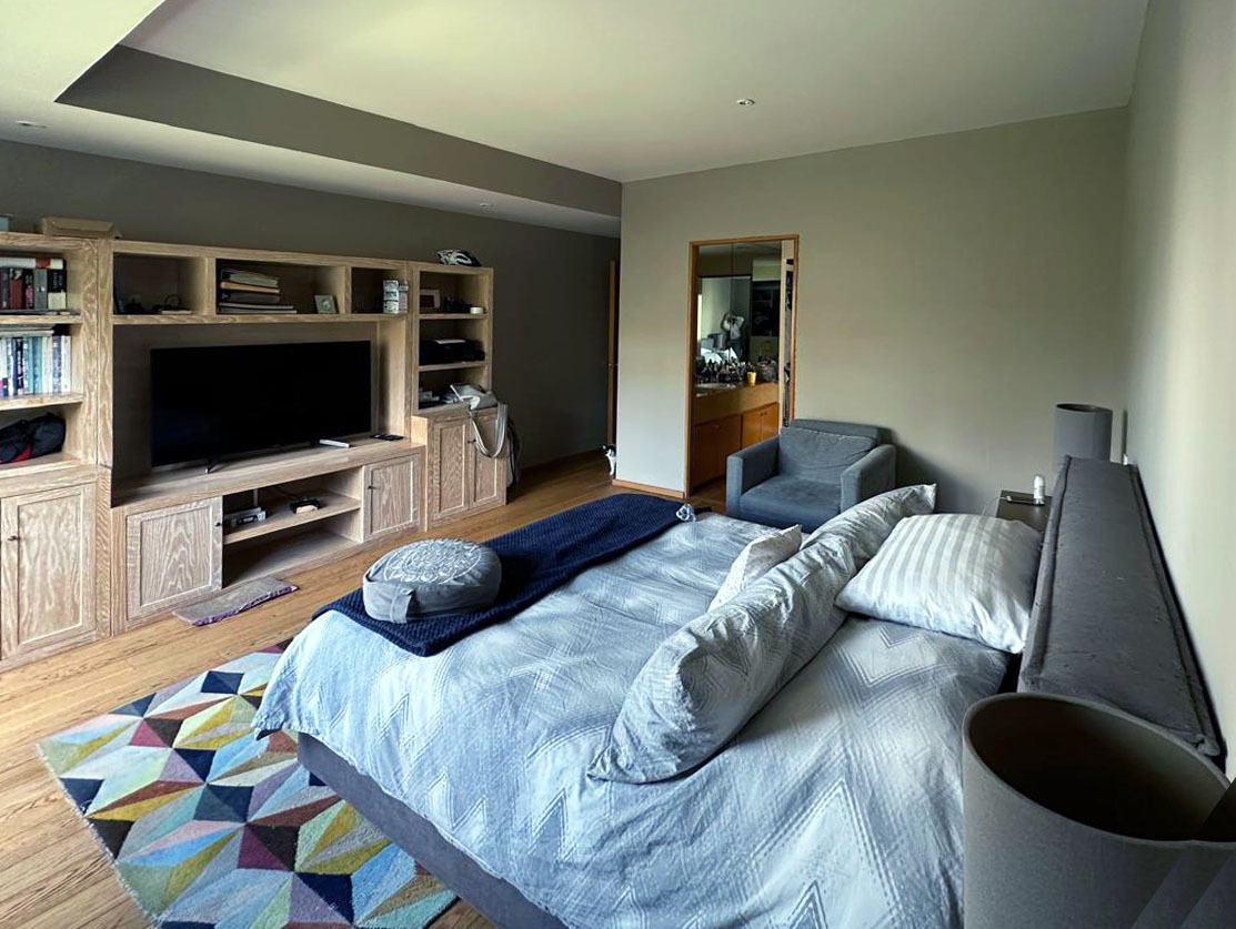 Terceira suíte com closet e compartilha banheiro completo com o banheiro de visitas.