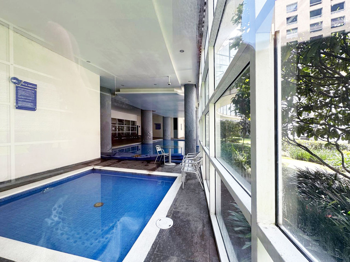 Amenidades muito completas: Salão de eventos, academia, piscina, jacuzzi, jardim muito amplo com quadra de paddle, área de jogos e quadra de squash coberta.