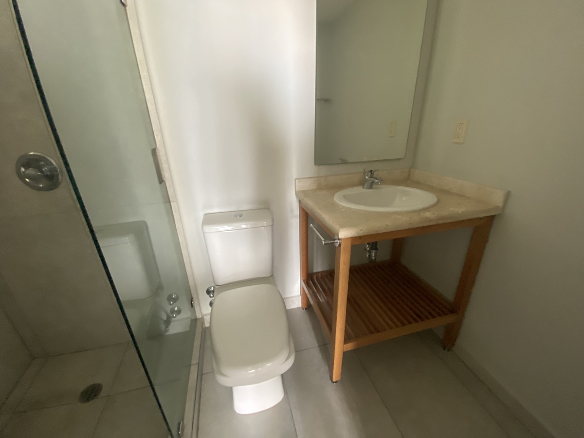 Cuenta con cocina semiabierta, amplia sala-comedor con vista panorámica, medio baño de visitas, y dos recámaras con baño completo; la recámara principal incluye vestidor.