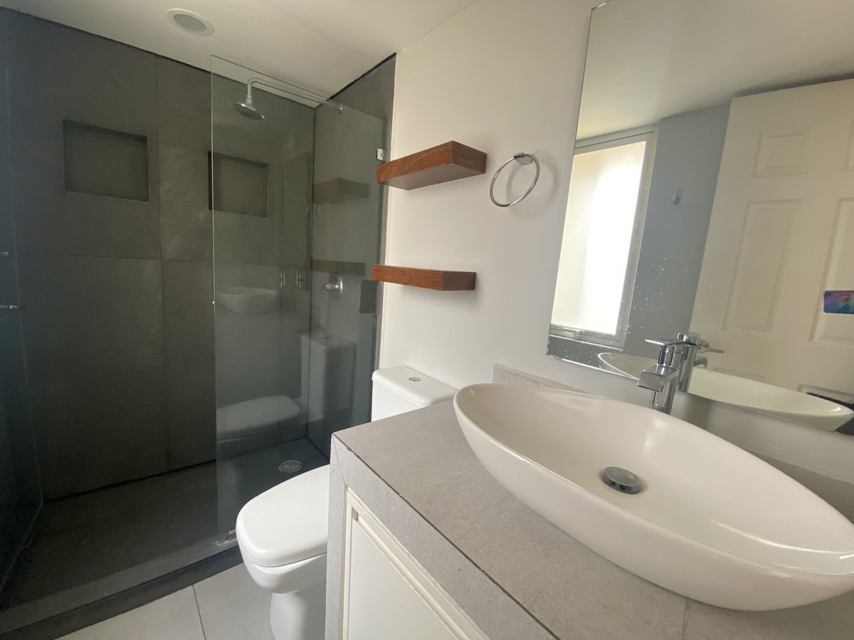 Dispone de área de lavandería y cuarto de servicio, además de dos lugares de estacionamiento techados.