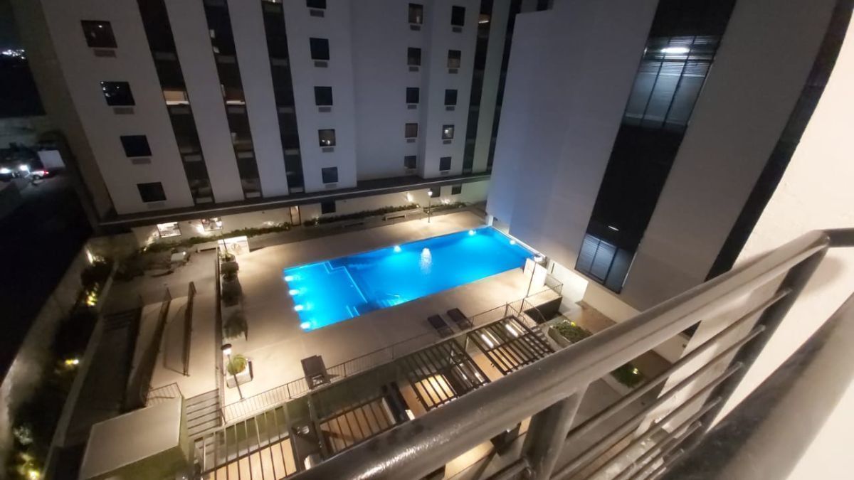 La torre cuenta con amenidades como alberca, asadores, salón de usos múltiples, así como una plaza comercial con gran variedad de restaurantes y servicios a unos pasos de tu departamento.