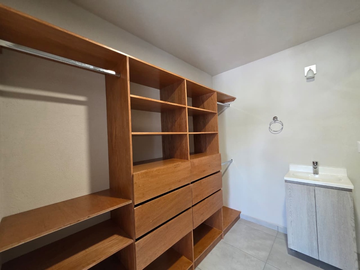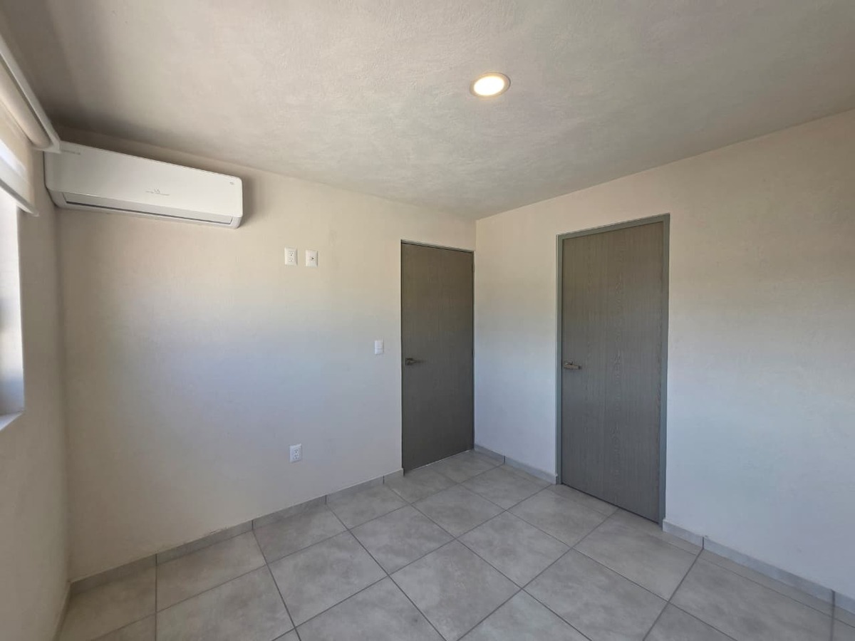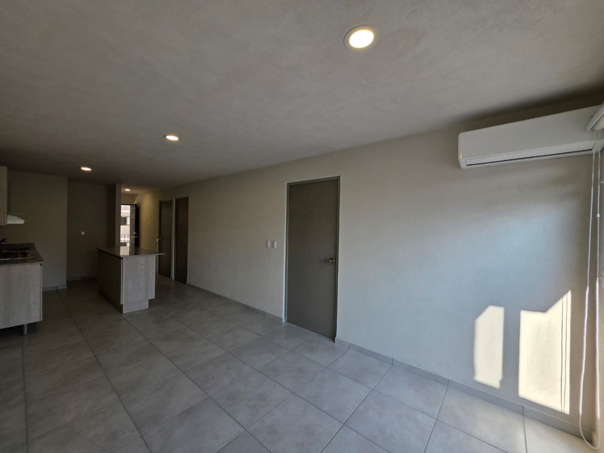 Departamento: Sala-Comedor con AC, Cocina integral, Terraza, Recámara principal con AC, Vestidor y Baño completo, Recámara secundaria con Clóset, un Baño completo, Área de lavado y un Cajón de estacionamiento techado.