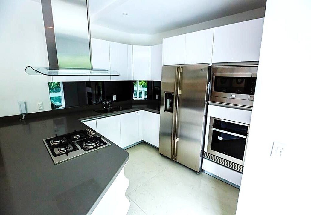 Cocina abierta equipada con electrodomésticos.