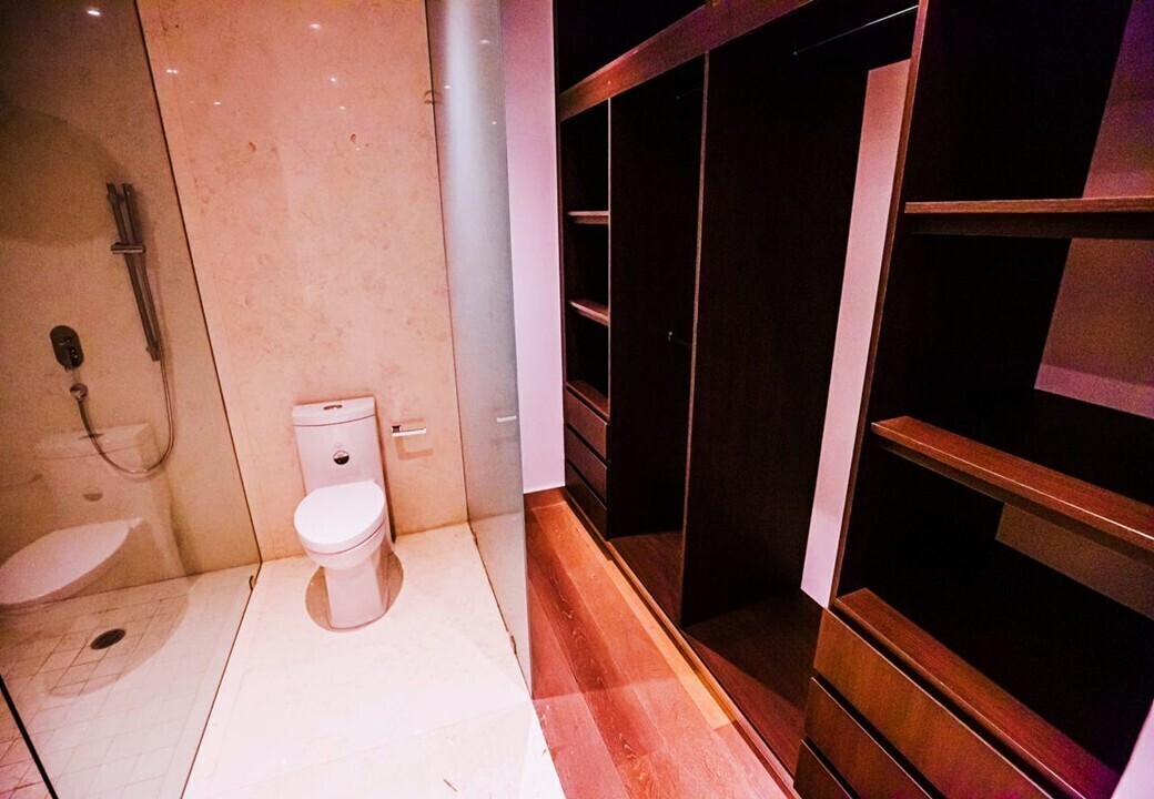 Área de servicio con lava secadora / cuarto de servicio con baño completo, ambos en el mismo espacio.