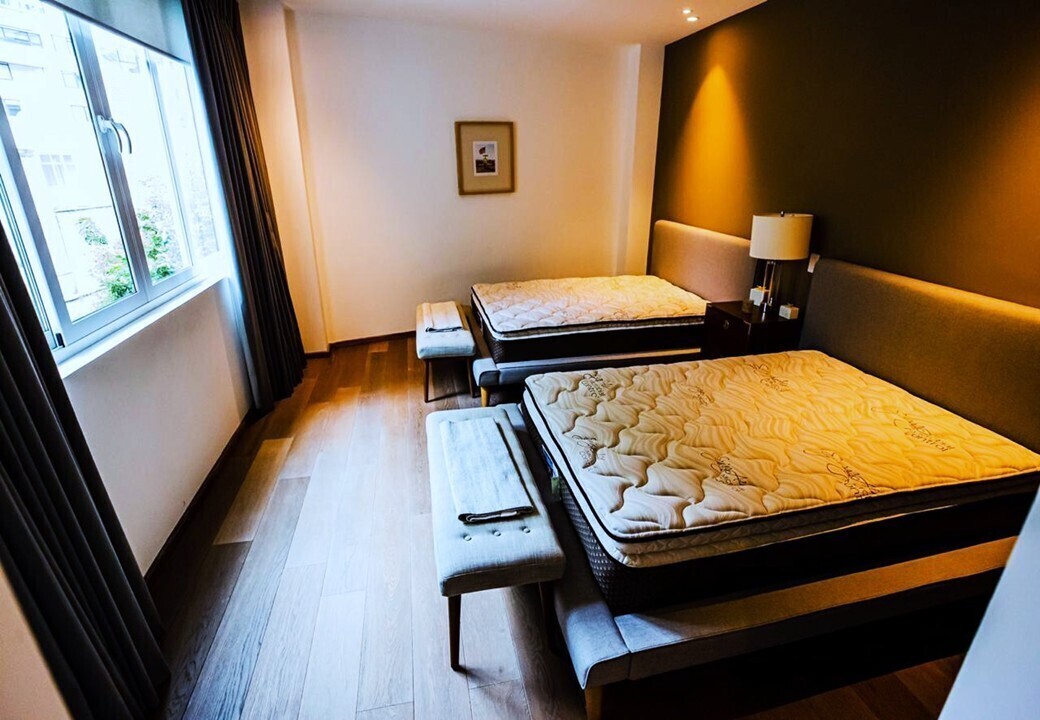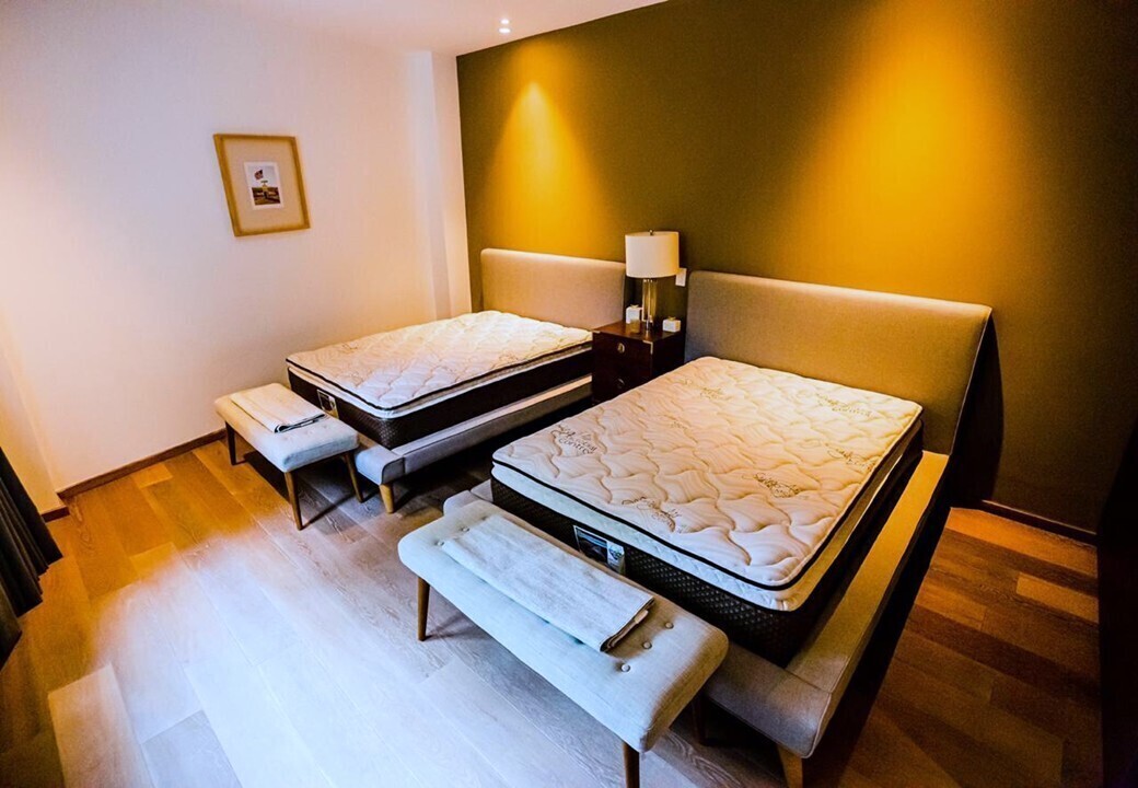 Recámara secundaria con dos camas queen con balcón, clóset y baño.