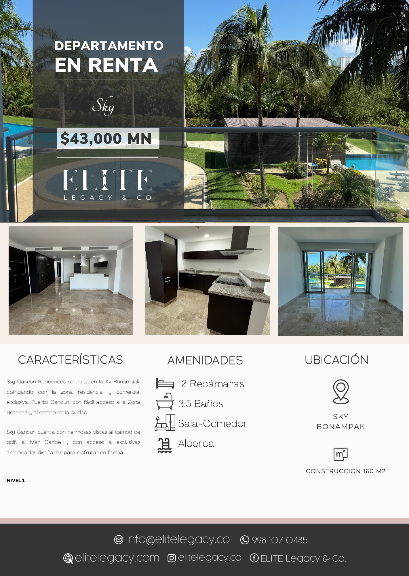 Departamento para Aluguel no Sky Puerto CancunDepartamento en Renta en Sky Puerto Cancun