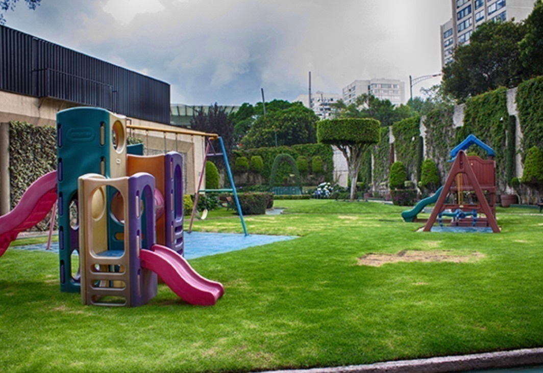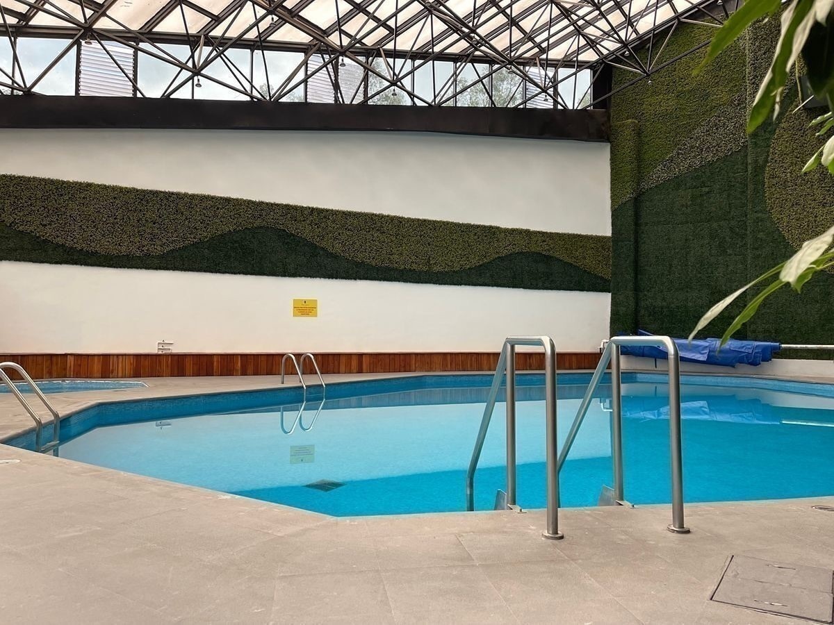 Alberca techada con jacuzzi, área de jóvenes, ludoteca, jardín con juegos infantiles, gimnasio con spa, vapor y sauna, salones de eventos y gran lobby equipado con todos los servicios.
