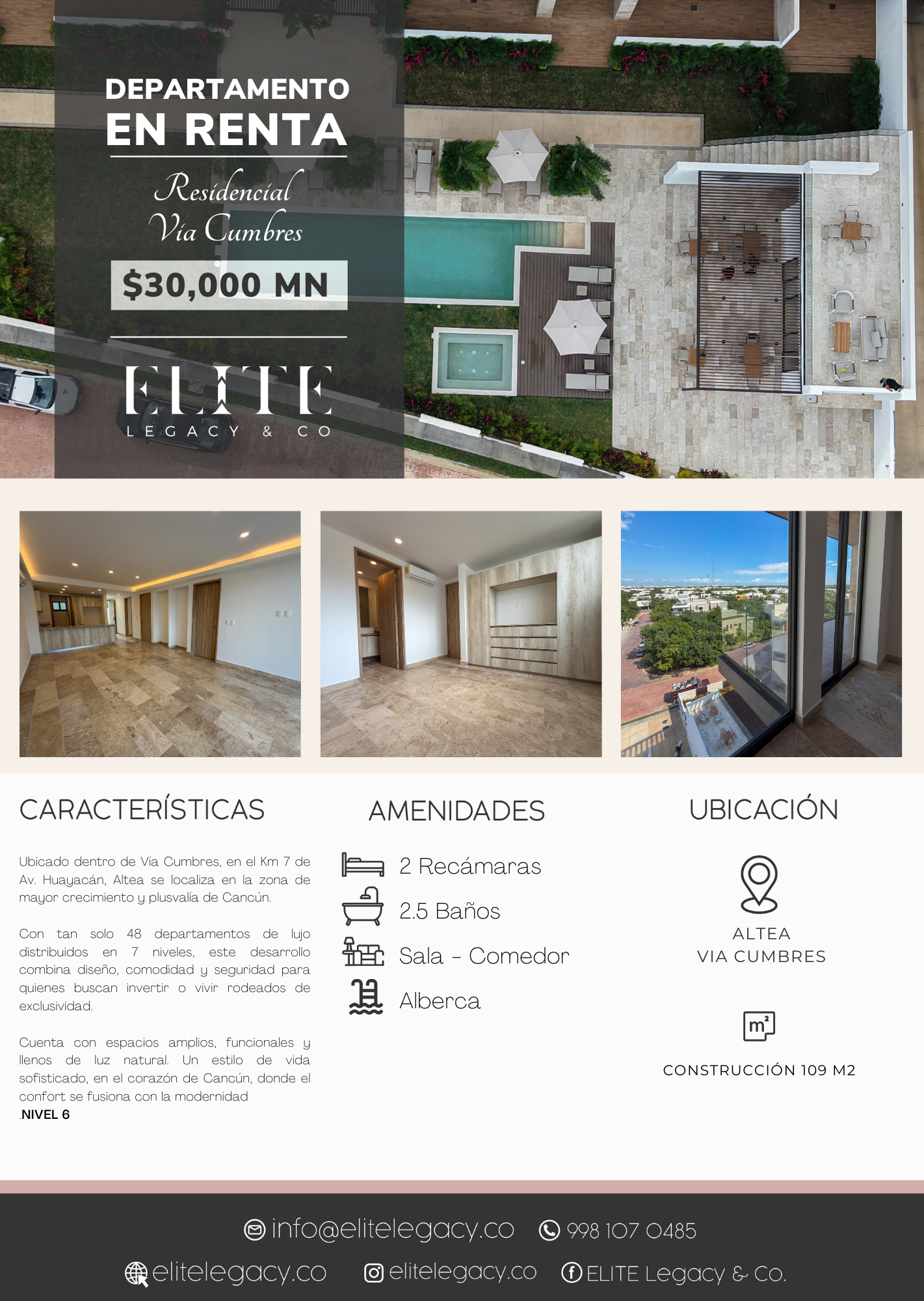 Cuenta con espacios amplios, funcionales y llenos de luz natural. Un estilo de vida sofisticado, en el corazón de Cancún, donde el confort se fusiona con la modernidad.