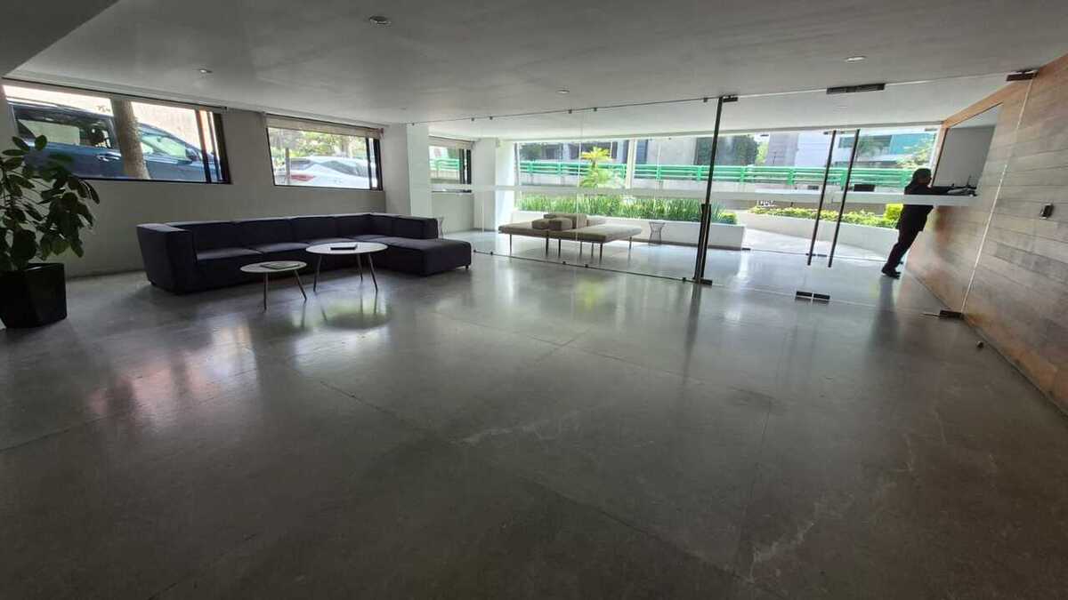 Cuenta con dos recámaras, sala, comedor, dos baños y dos lugares de estacionamiento; uno arriba y otro abajo con eleva auto y con servicio de valet parking.