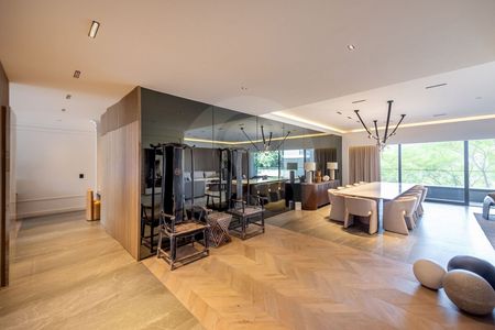 Distribuído em 301m2 com uma varanda panorâmica com uma bela vista na sala - jantar e no quarto principal com vista para o parque central, três quartos, cozinha, quarto de serviço, despensa, sala de família…