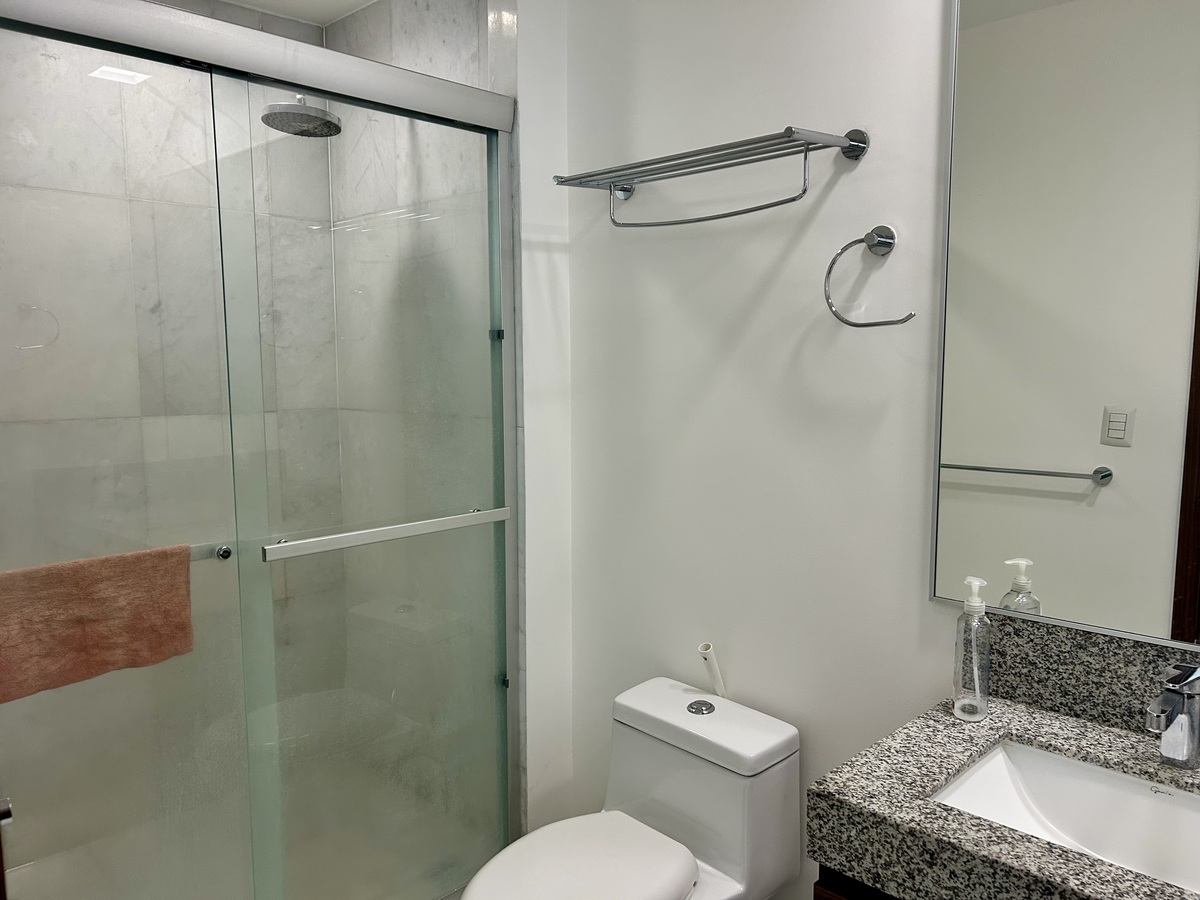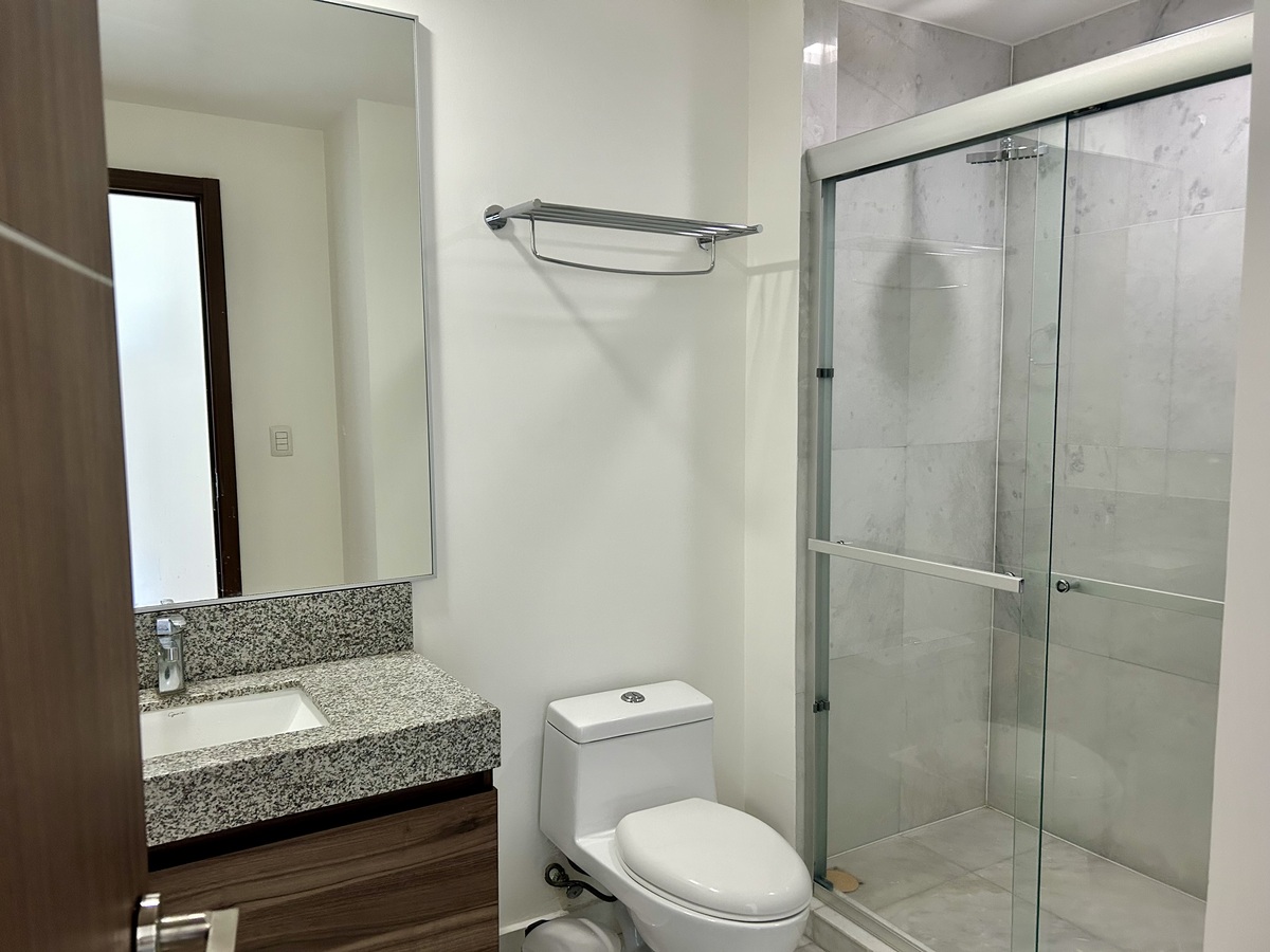 Recámara principal con vestidor y baño completo. Aire acondicionado