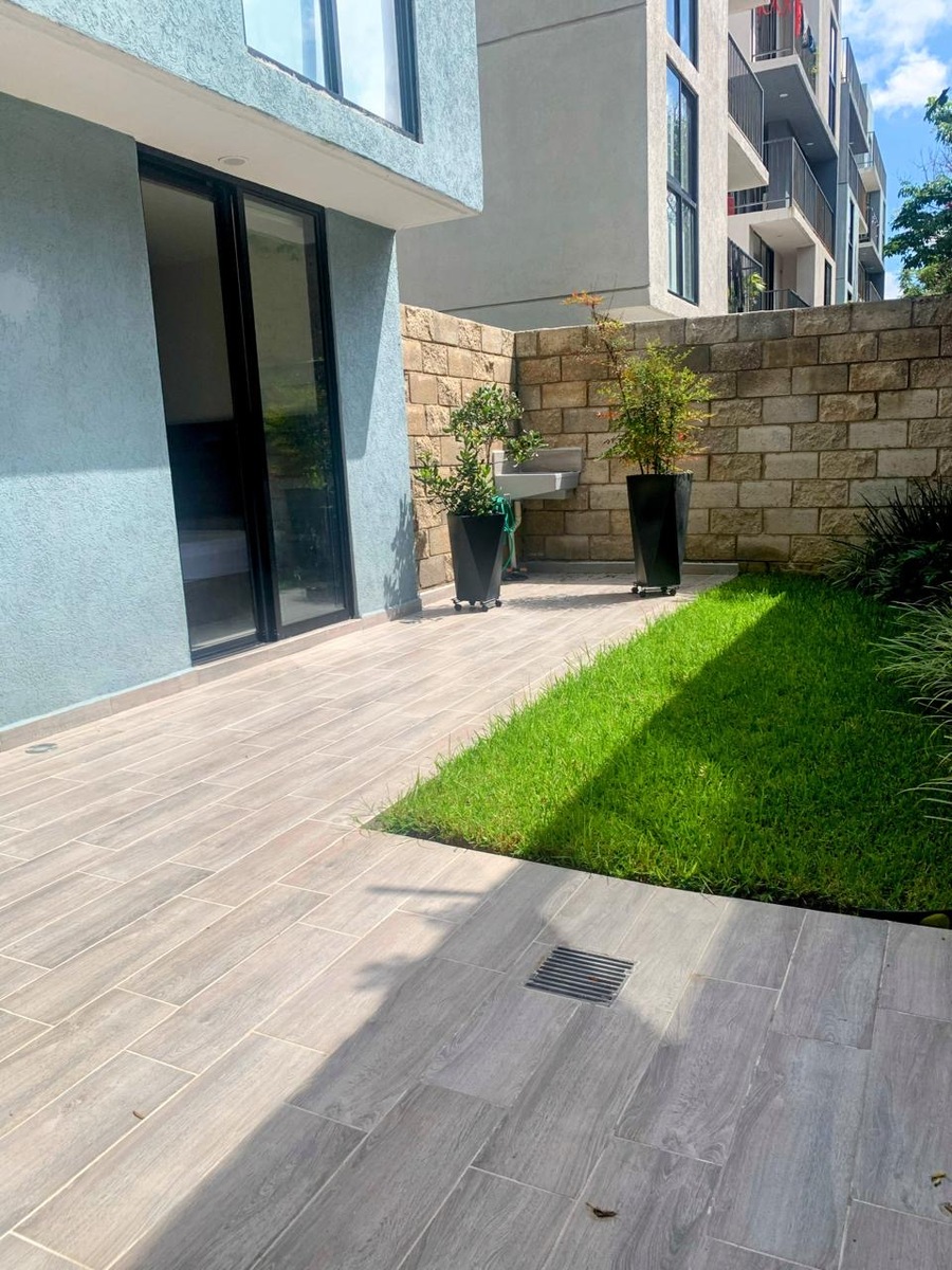 O apartamento tem 109 m² e está localizado no andar térreo. Distribuído em sala de estar, sala de jantar, cozinha integrada equipada, área de lavanderia, dois quartos (o principal com banheiro completo e ar-condicionado) e um total de dois banheiros completos. Possui cortinas na sala de estar e na sala de jantar, e uma ampla terraço privativo ideal para desfrutar ao ar livre.