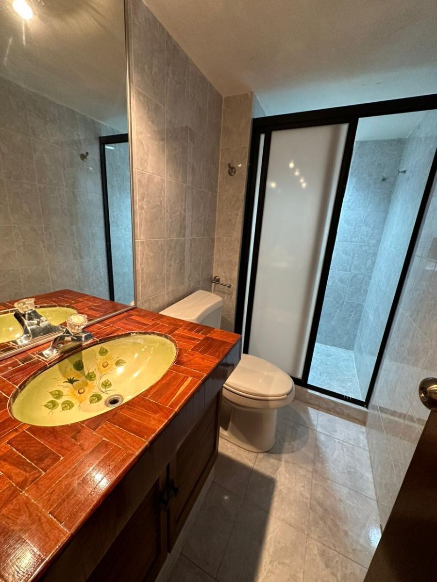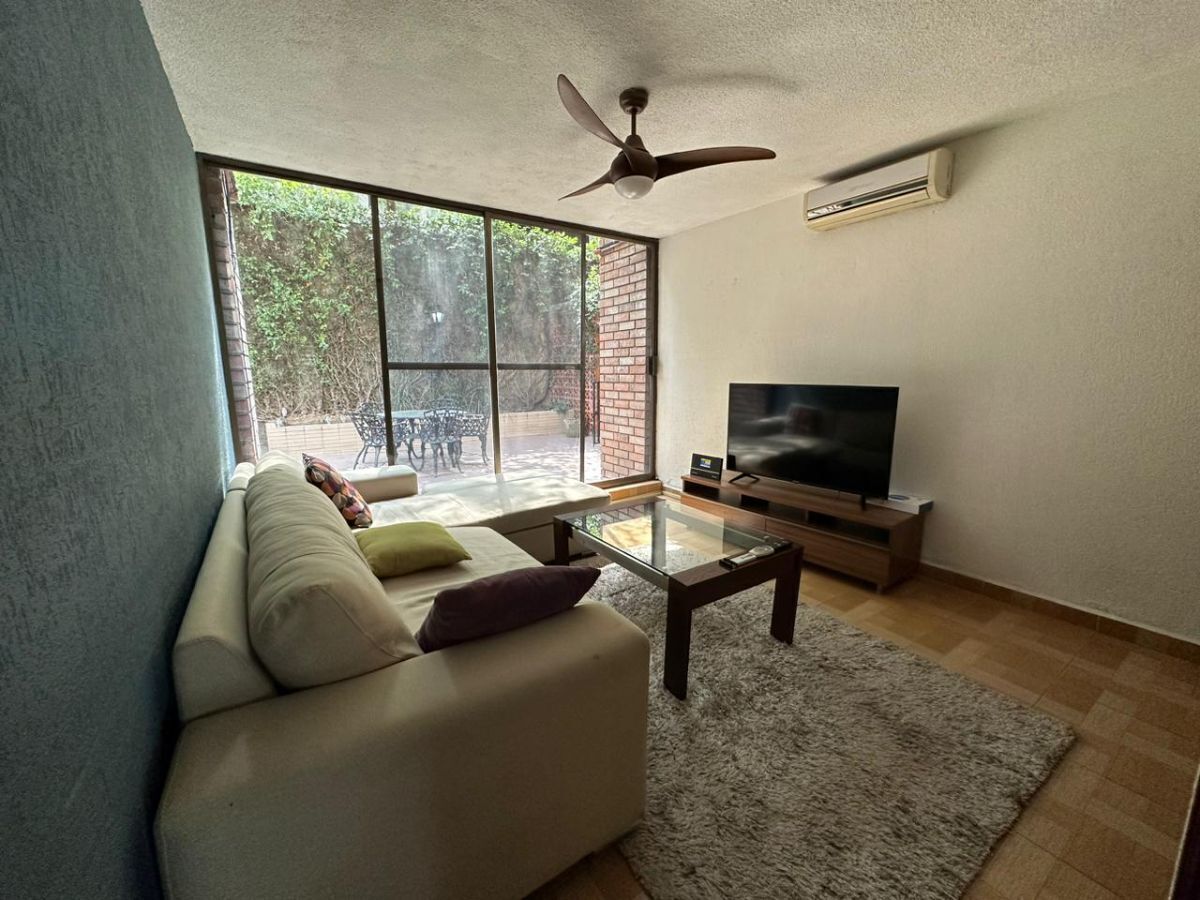Amplia sala comedor, cocina abierta equipada, dos recamaras, una estancia con salida a hermosa terraza, patio propio y balcon, dos baños, cochera doble techada para dos autos con portón cada una, lavandería con lavadora y secadora.