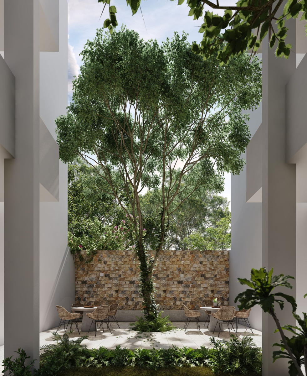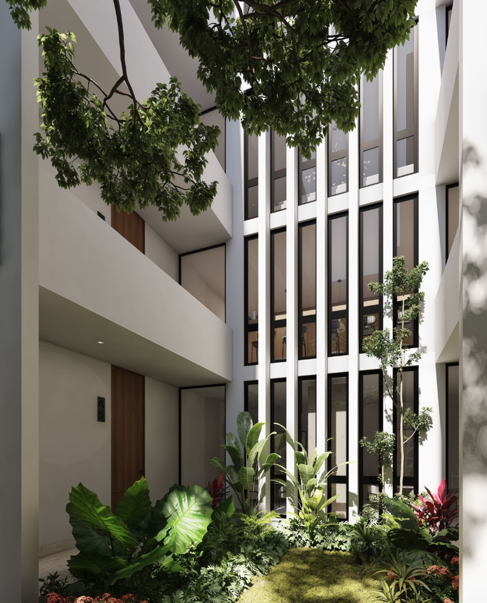 Es un complejo de 45 departamentos de 1 ó 2 recámaras; ubicados en Temozón Norte, zona de alta plusvalía; cuenta con tres niveles, elevador y amenidades.