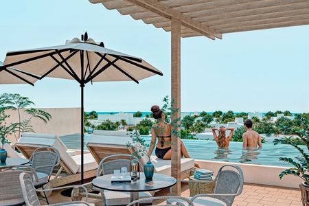 El condominio ofrece alberca exterior con palapa y se encuentra en ubicación privilegiada: a 5 minutos de la playa, a 10 minutos de restaurantes y centros comerciales, y a 15 minutos del aeropuerto. Perfecto para inversión con alta plusvalía o como hogar permanente.
