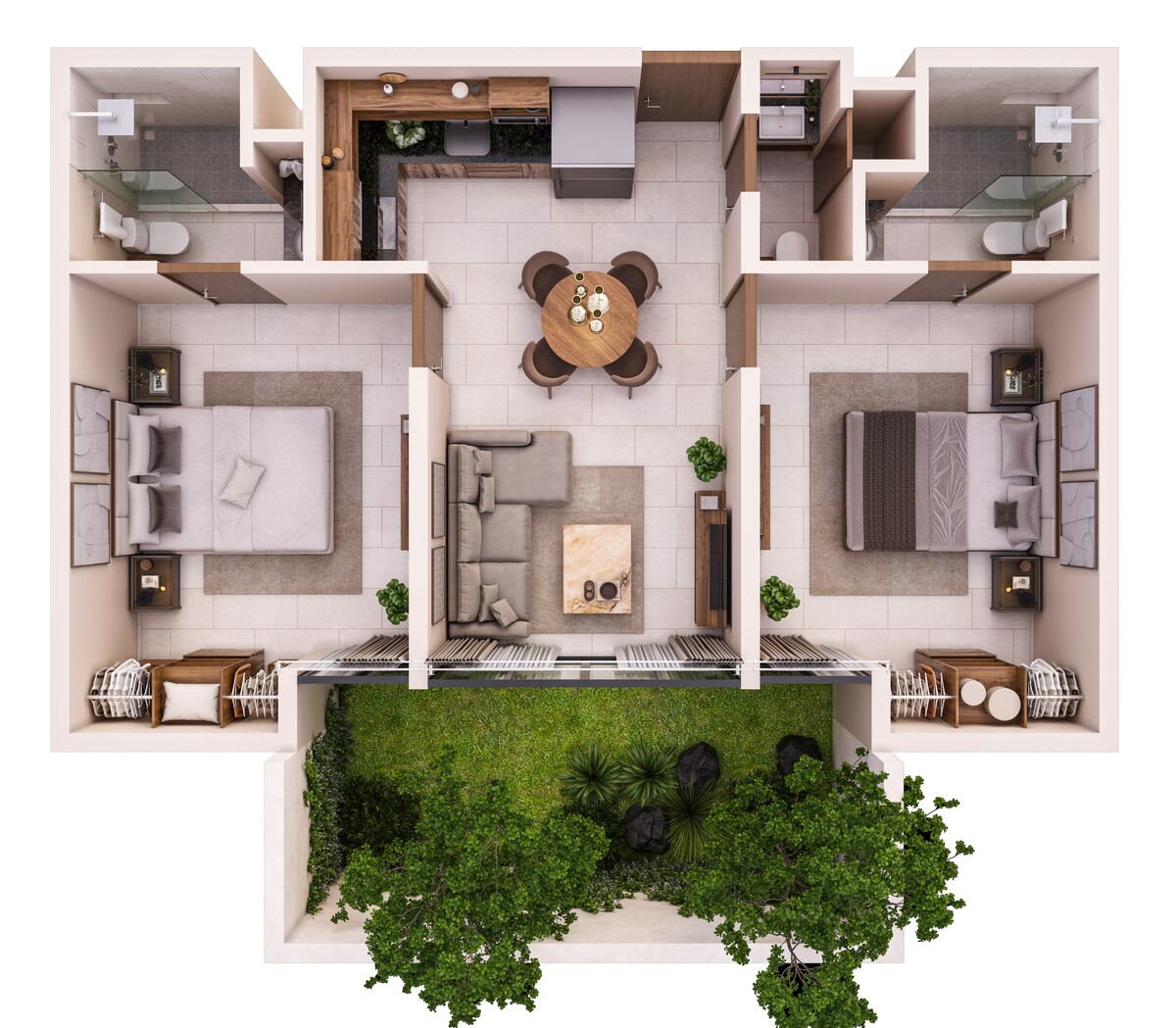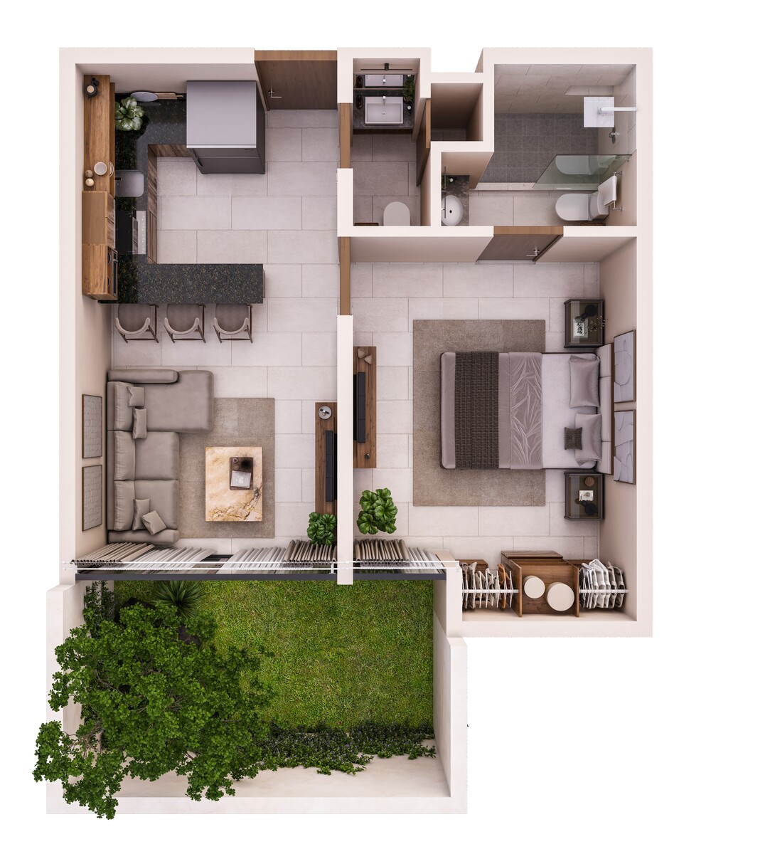 Departamentos de 1 y 2 recámaras con diseño funcional, acabados de calidad y amenidades pensadas para el estilo de vida actual: alberca, coworking, terraza, zona grill, lavandería y más.