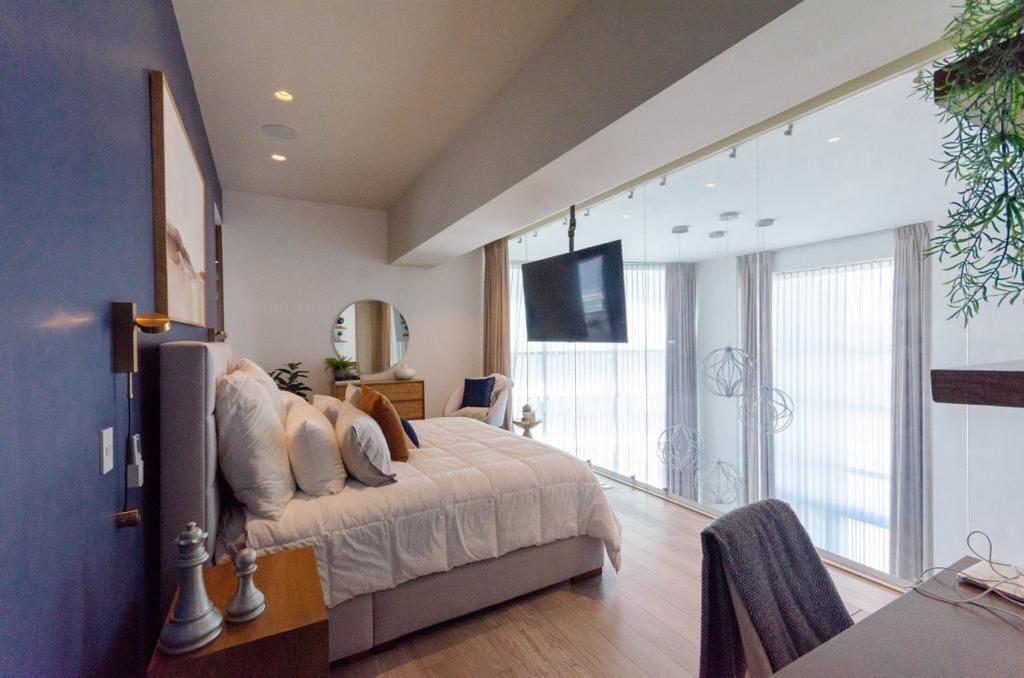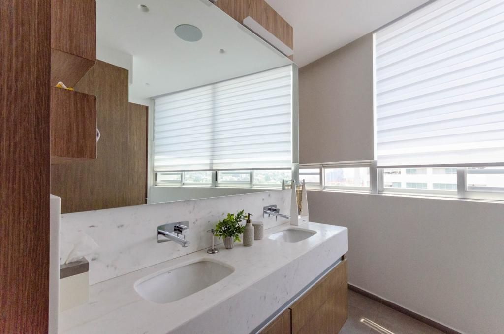 3 habitaciones, cada una con baño y vestidor, la habitación principal tiene 2 vestidores y regadera doble.