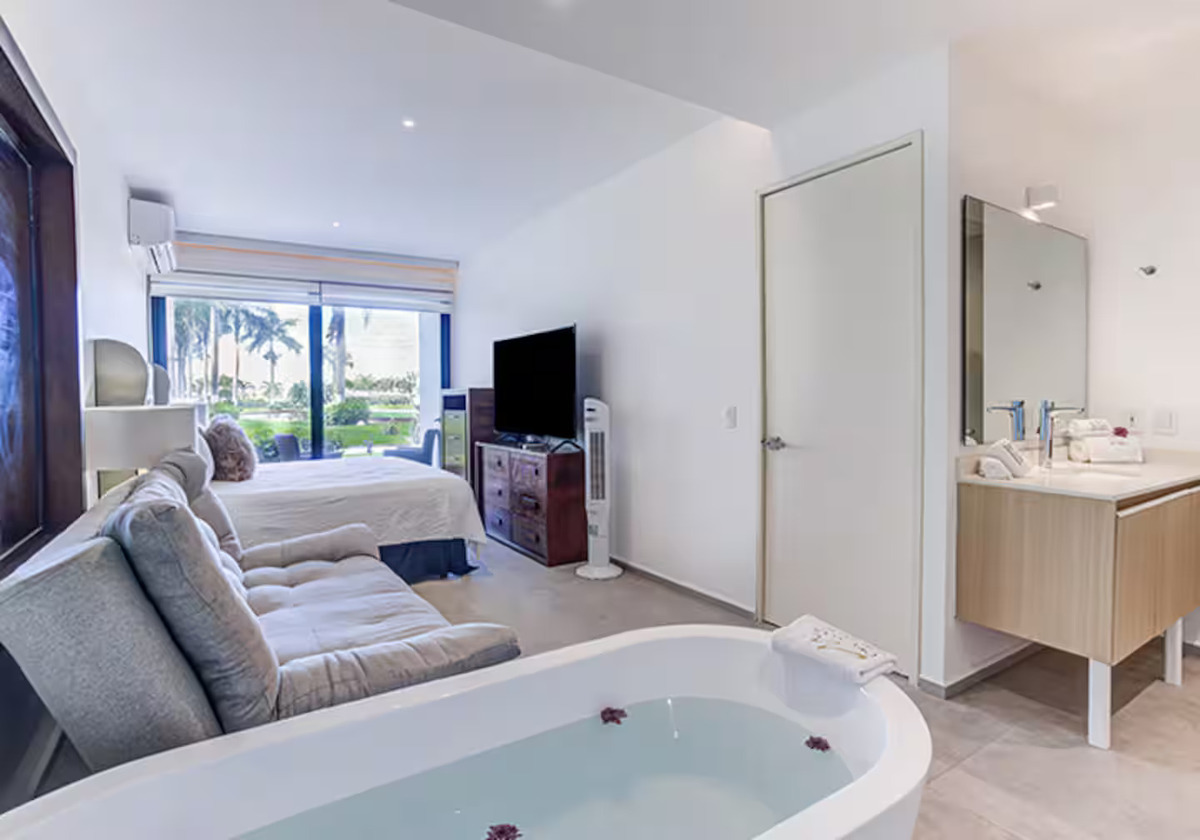 El espacio combina confort, elegancia y privacidad, destacando un jacuzzi privado, acabados de lujo y sistema de domótica para un hogar inteligente con el máximo estilo de resort.