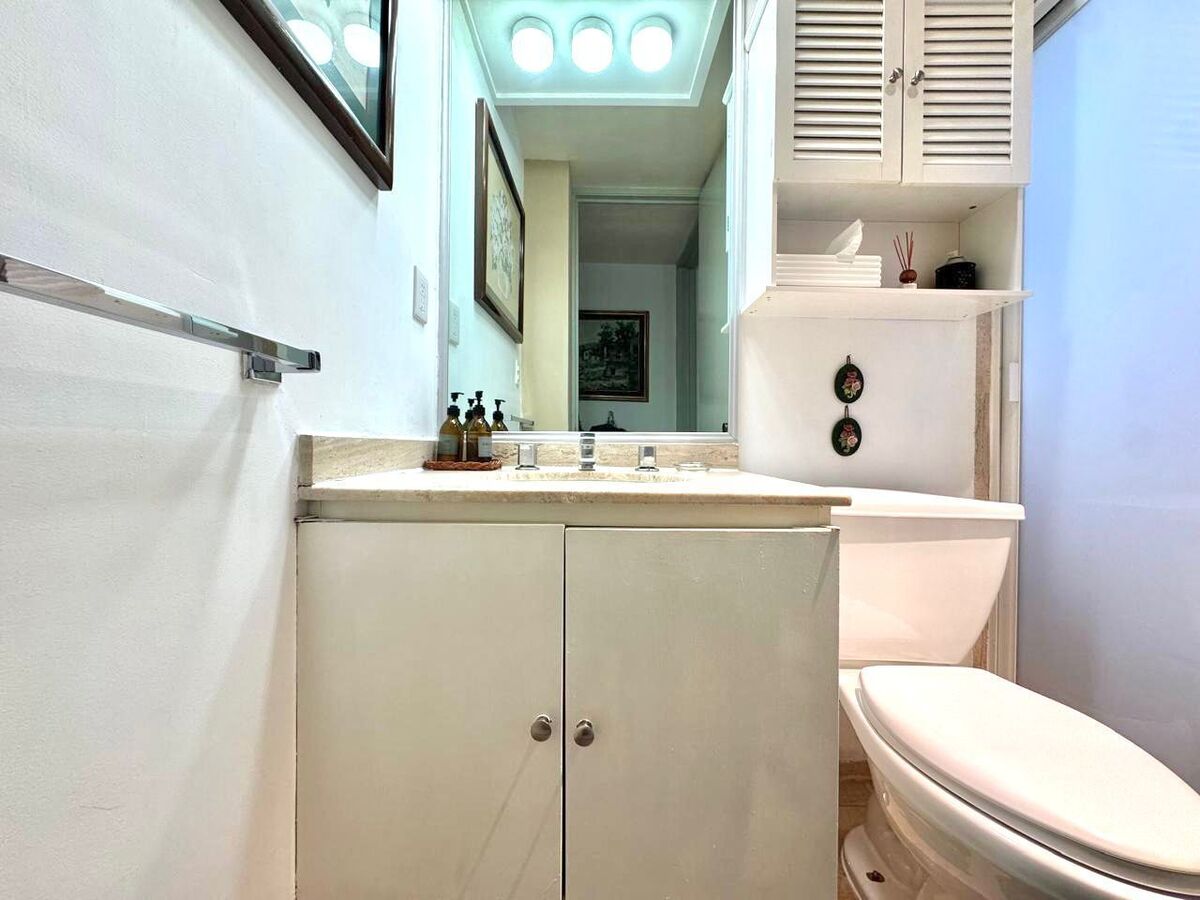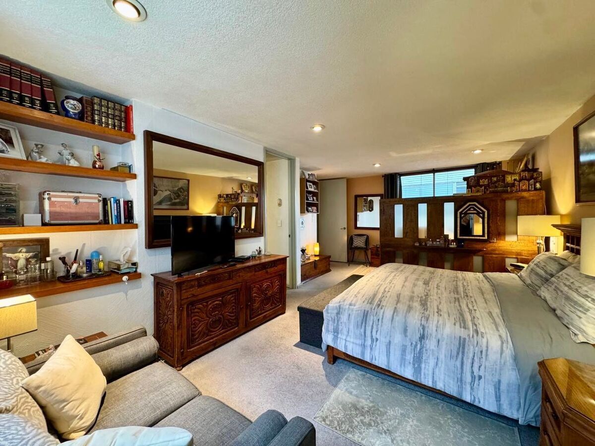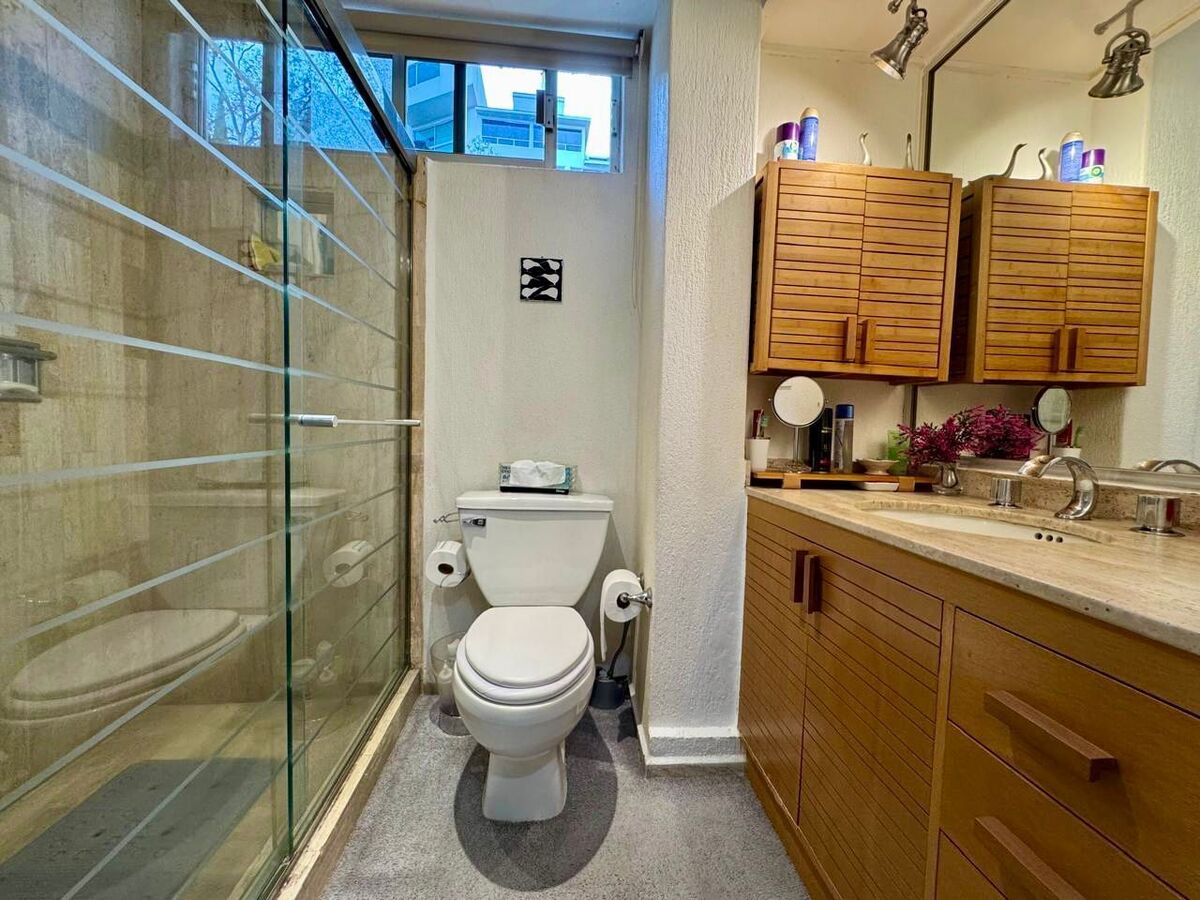 El departamento cuenta con un estudio con baño completo, perfecto para oficina, sala de TV o incluso habilitarlo como una tercera habitación. La habitación principal es un refugio privado, equipada con vestidor, clóset adicional, estudio y baño completo, ofreciendo un espacio amplio y versátil para tu descanso. Además, dispone de una habitación secundaria con clóset y un baño completo exterior que brinda comodidad a visitas y familiares.