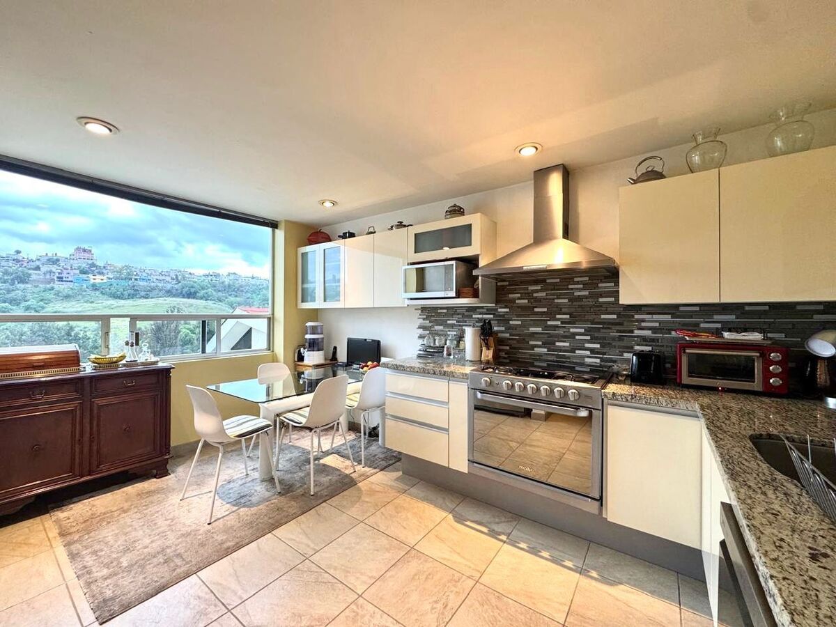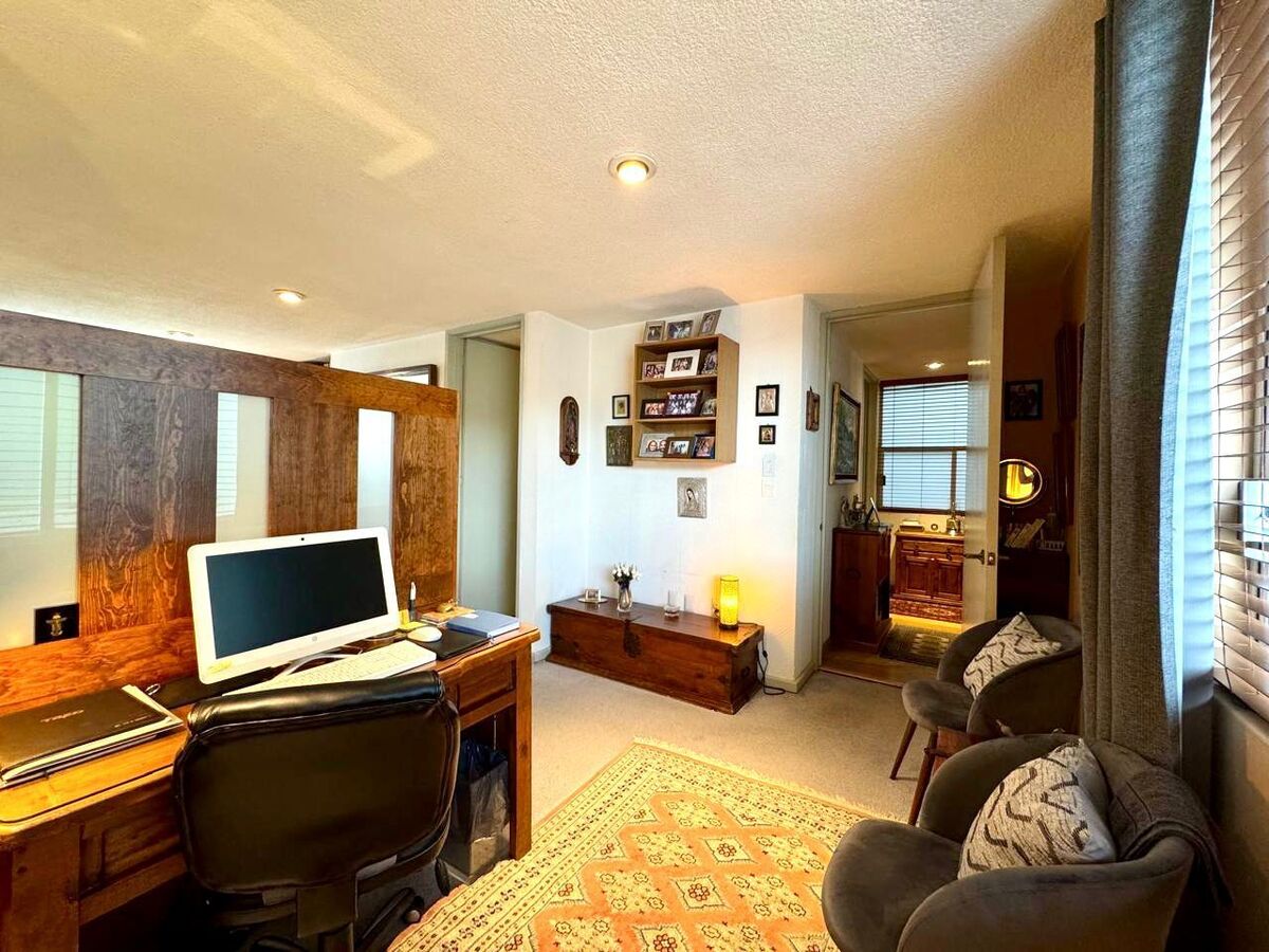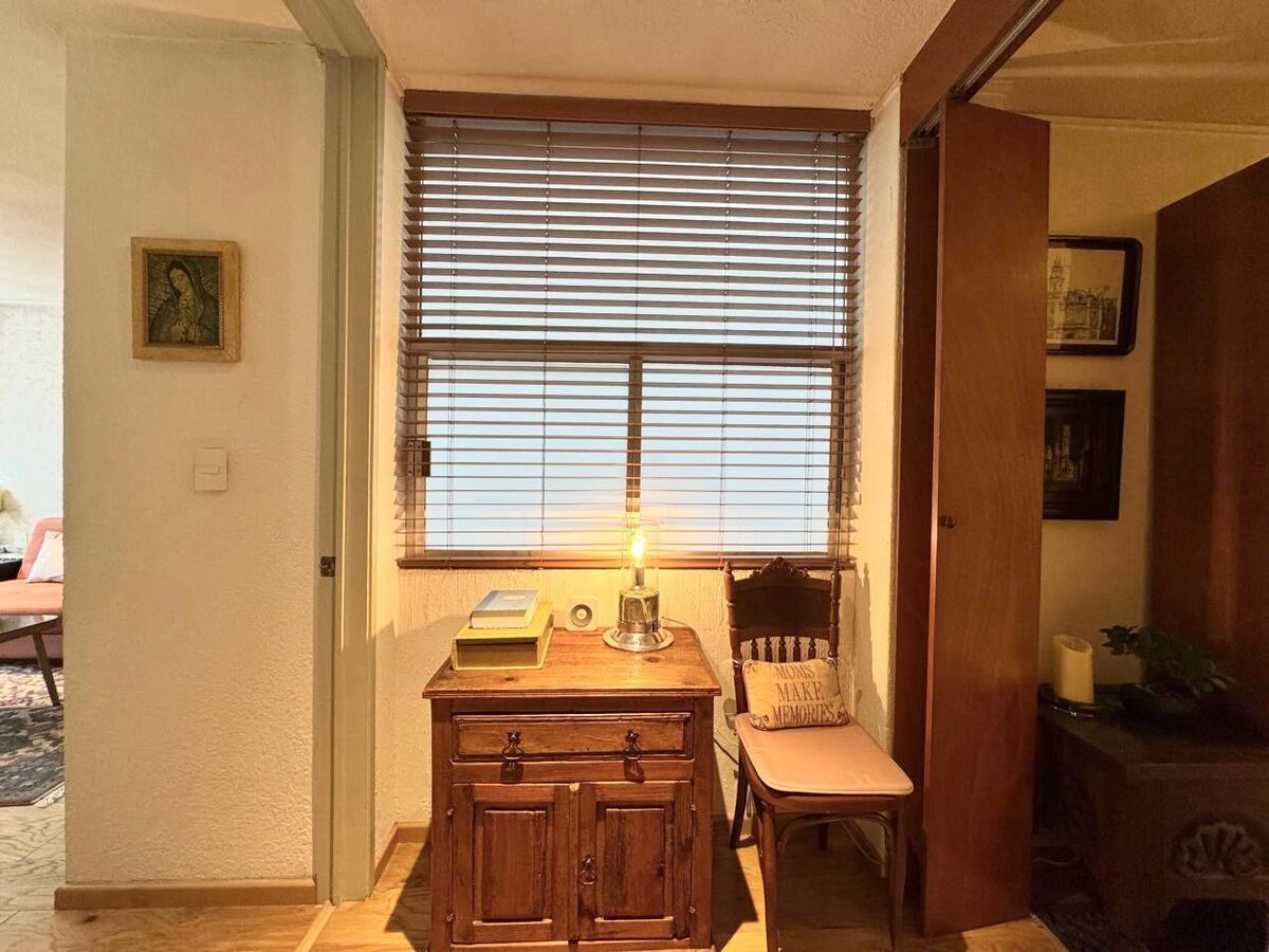 El departamento cuenta con un estudio con baño completo, perfecto para oficina, sala de TV o incluso habilitarlo como una tercera habitación. La habitación principal es un refugio privado, equipada con vestidor, clóset adicional, estudio y baño completo, ofreciendo un espacio amplio y versátil para tu descanso. Además, dispone de una habitación secundaria con clóset y un baño completo exterior que brinda comodidad a visitas y familiares.