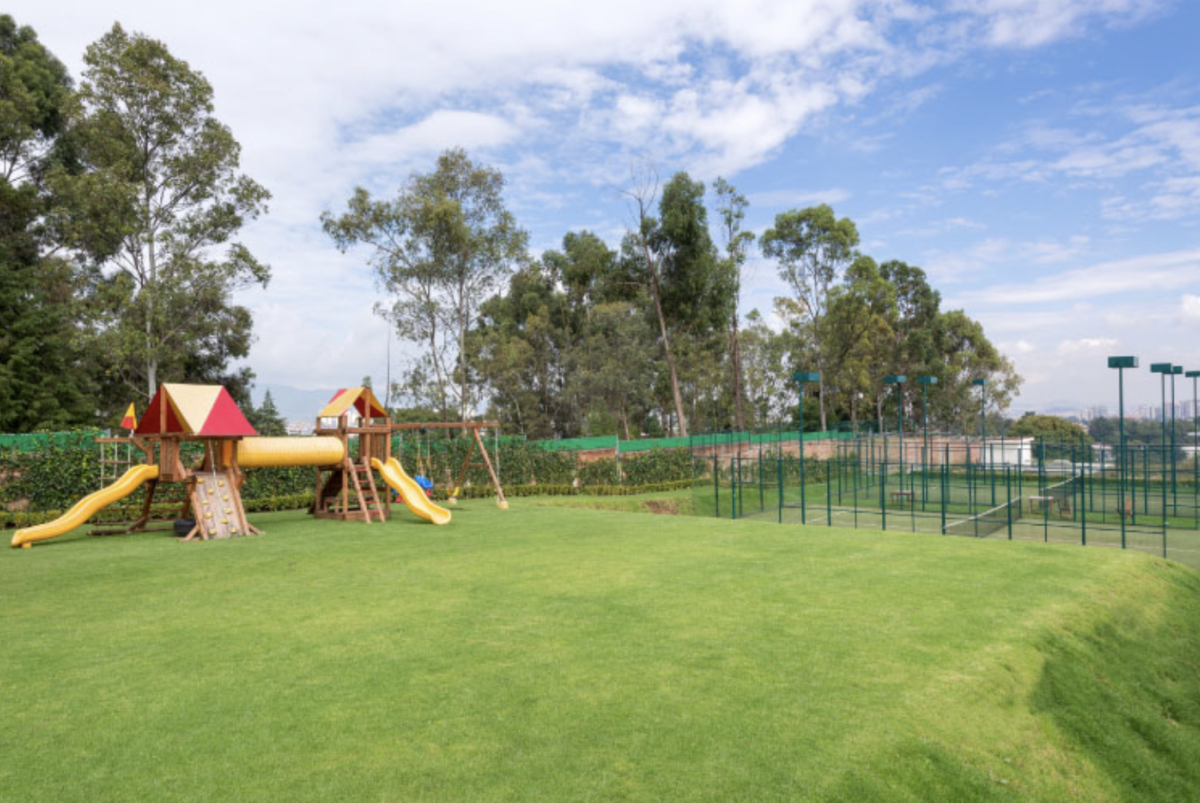 Casa club con gym, Cancha de tenis,Cancha de paddle, mini golf, juegos infantiles, senderos para bicicleta, jardines, ludoteca, restaurante, bar, arenero y capilla.