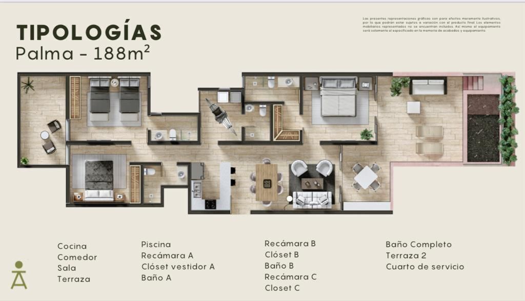 Depto ubicado en Primer Nivel de 3 recámaras + 4 baños completos + cuarto de servicio + ALBERCA privada.