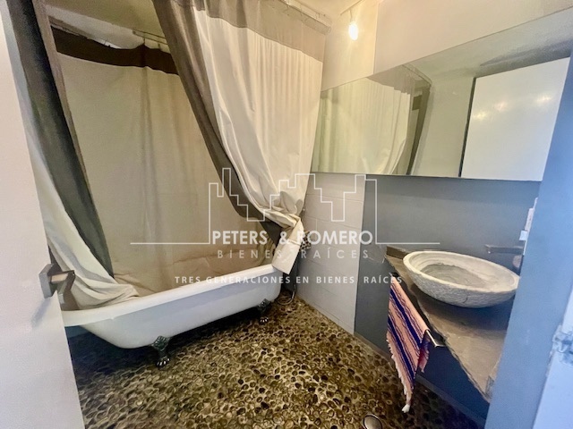 • Dos baños completos, uno de ellos con tina estilo vintage y pisos de piedra de río.