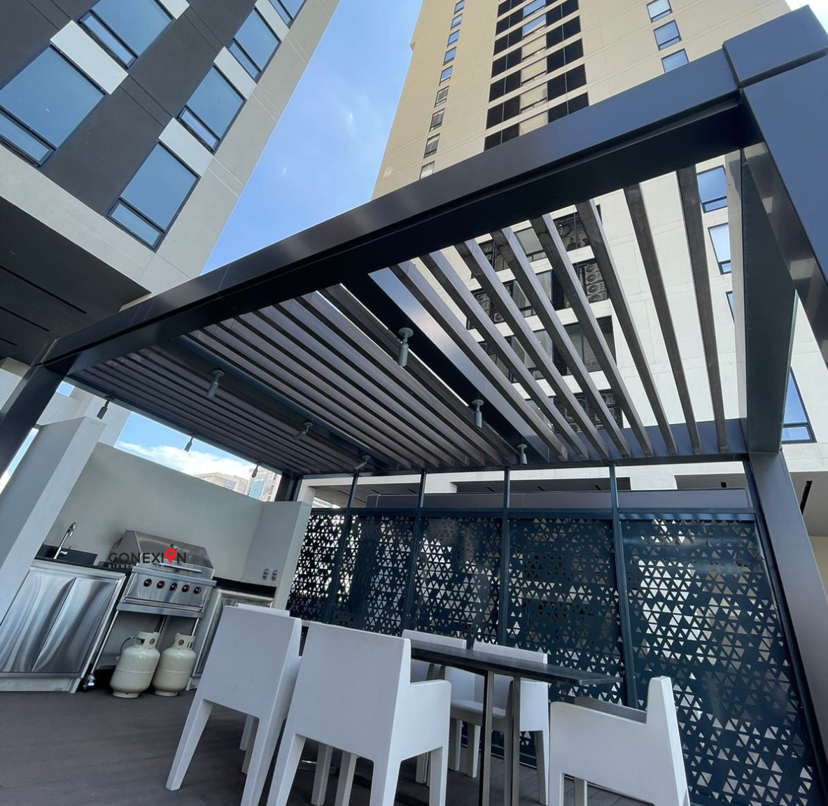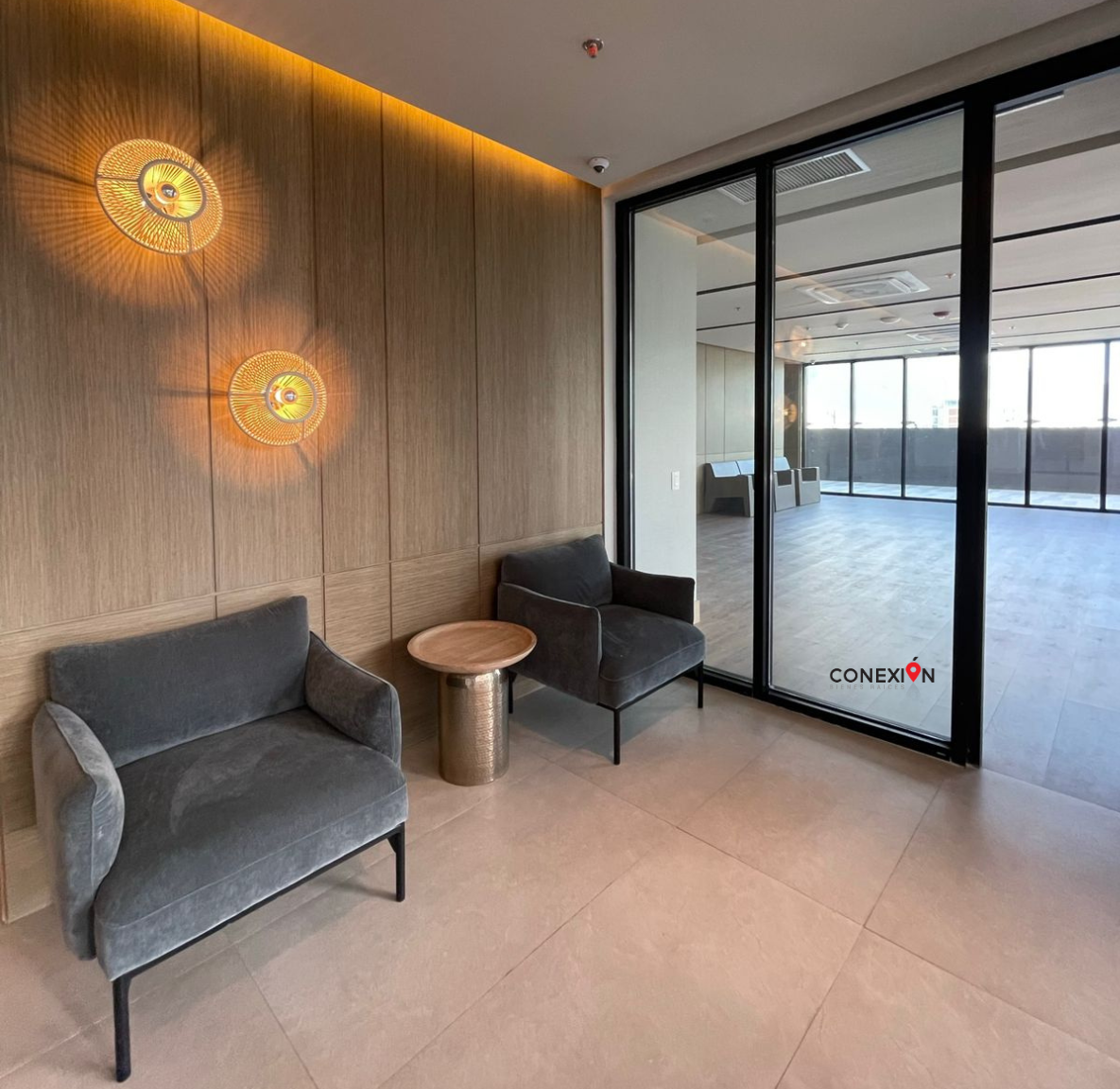 Vive en una Torre de usos mixtos de primer nivel, donde cuentas con Oficinas y más de 1,500 m² de área comercial con una plaza central que te conecta con todo lo que necesitas —sin salir de casa.