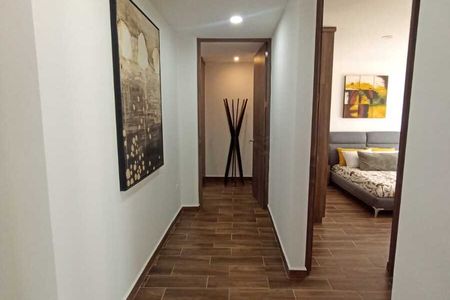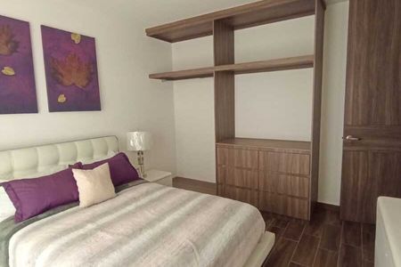 El departamento cuenta con amplios espacios abiertos y muy buena iluminación natural. Cocina integral con barra de granito, balcón, sala-comedor, baño de visitas, 2 recámaras secundarias con balcón, recámara principal con baño completo y vestidor.