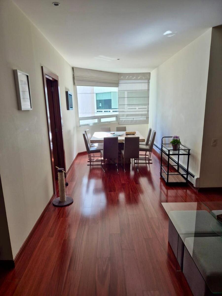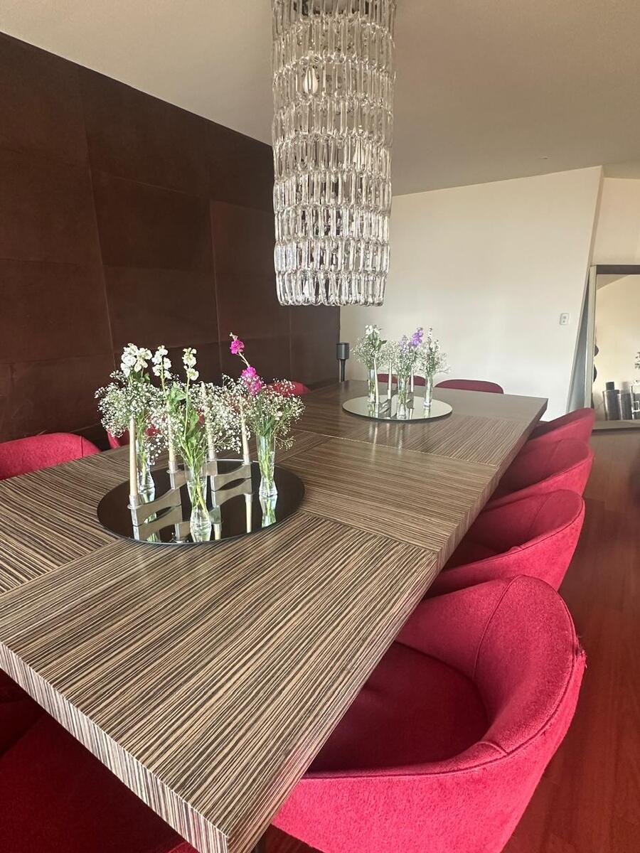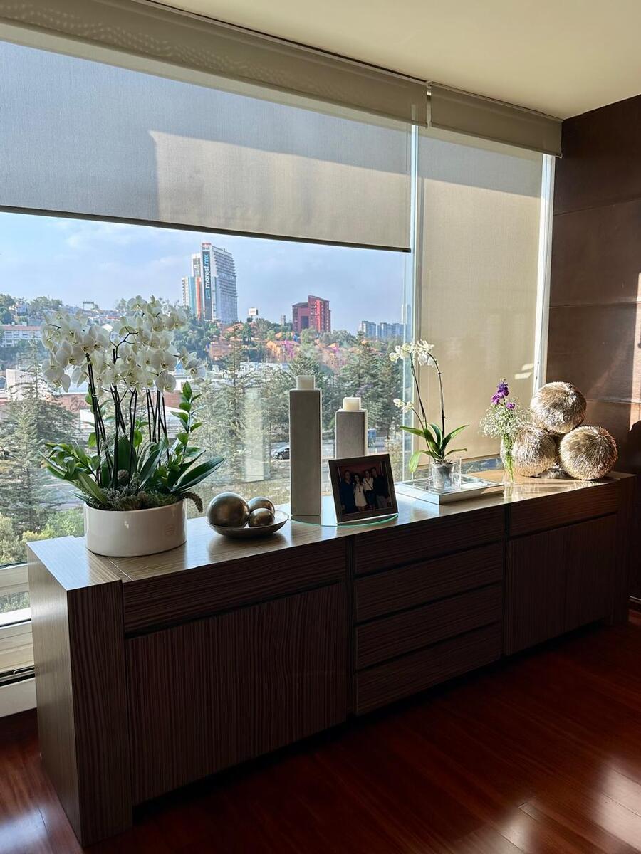 Precioso departamento en venta en Avenida Santa Fe a un paso del Parque la Mexicana, Universidades prestigiadas, Corporativos, Centro Comercial Santa Fe. Sala comedor, cocina integral, 4 recamaras, 4 1/2 baños, 3 estacionamientos, bodega, piso bajo. Amenidades: alberca techada y climatizada, spa, jacuzzi, gimnasio, spining, salón de jovenes, ludoteca, salón de fiestas, jardín con juegos infantiles, vigilancia 24 horas.