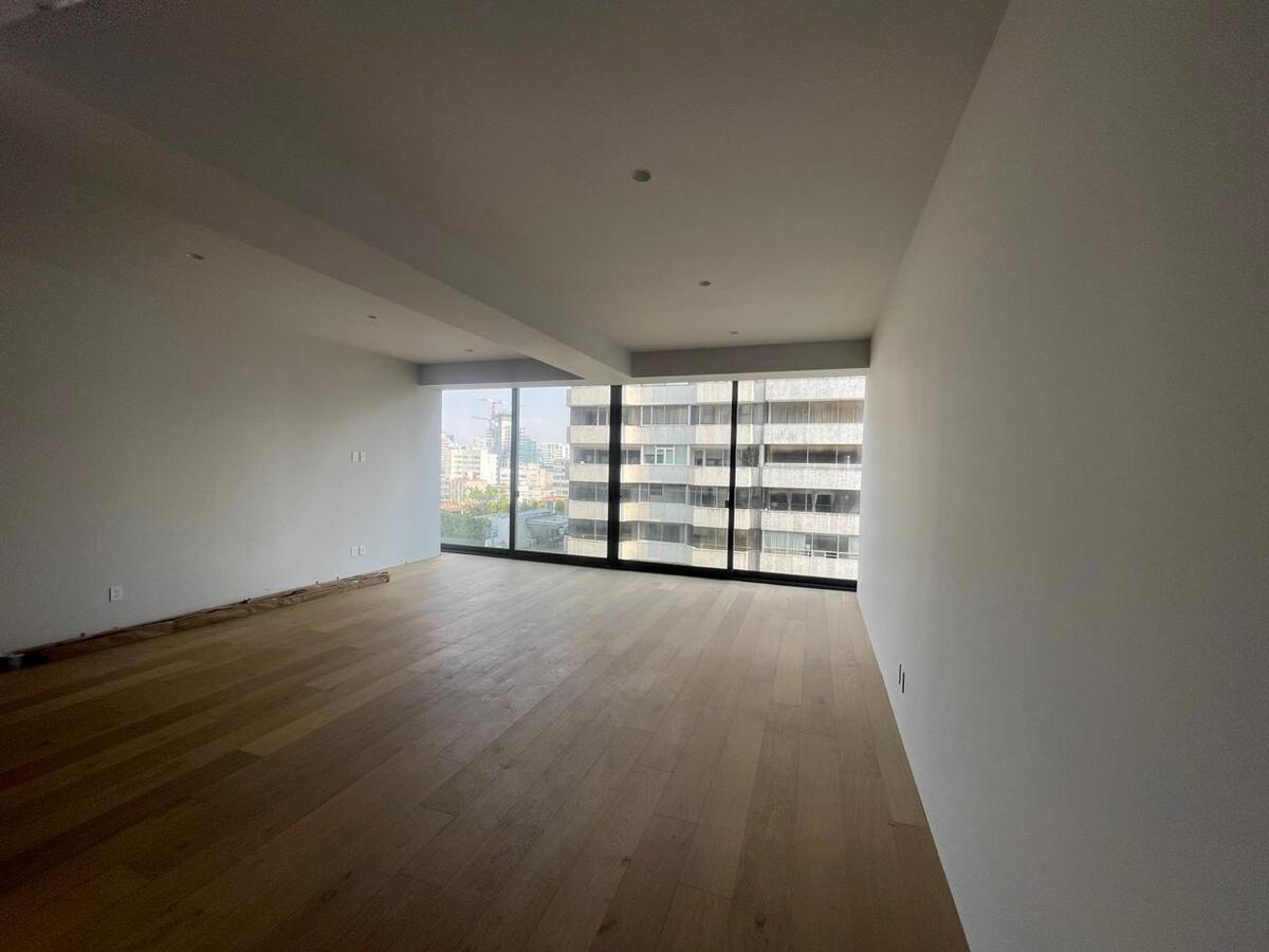 "Este departamento cuenta con una estancia muy amplia y luminosa, un balcón francés, brinda un ambiente muy acogedor, su cocina abierta, un cuarto de servicio con baño completo.