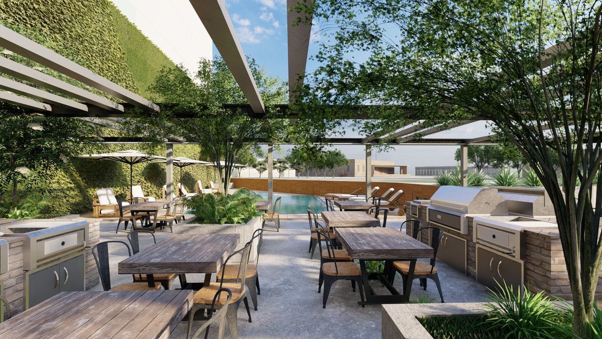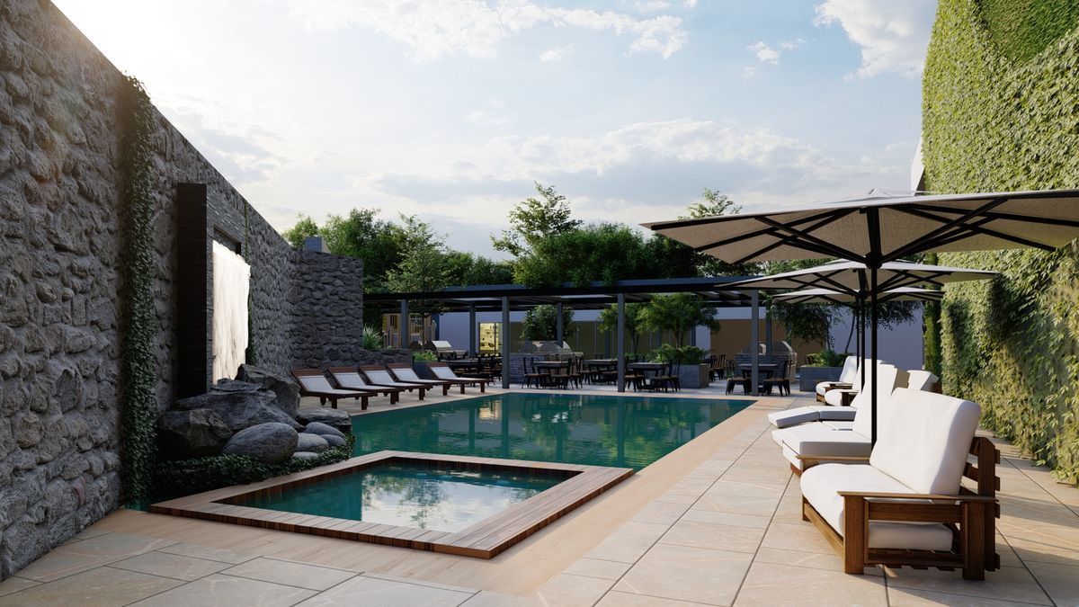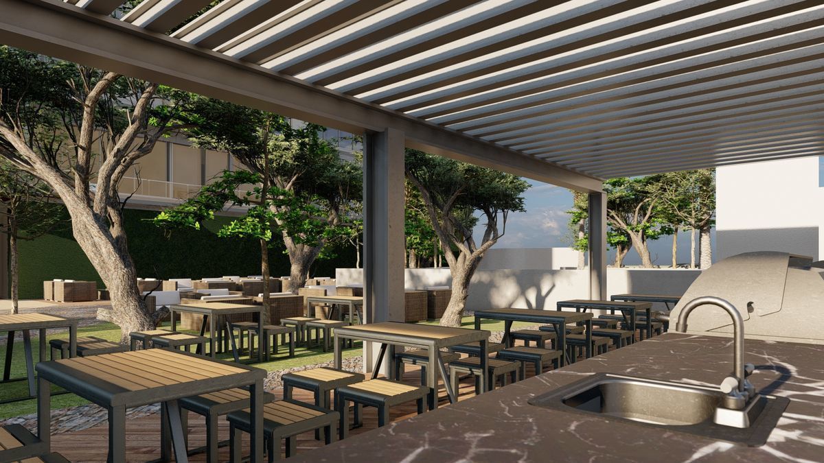 El edificio contará con amenidades como alberca con jacuzzi y camastros, gimnasio, salón de juegos, sports bar, juegos infantiles, área de asadores, zona de picnic, parque para mascotas, salón para eventos, sala de cine, espacios de co-work, ludoteca, lavandería., entre otras.