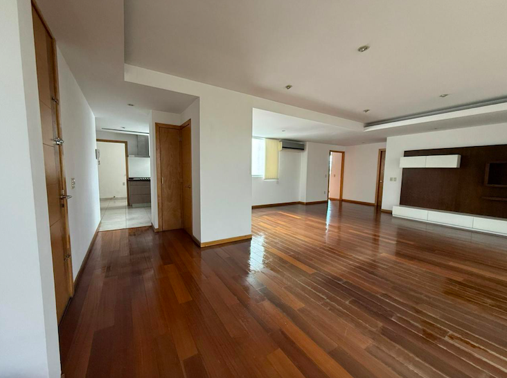 El departamento se encuentra en piso 3, el elevador llega directo al departamento, la torre es un conjunto único, cuenta el departamento con 122 m2, dos baños completos, dos recamaras la principal con vestidor, la secundaria con closet, medio baño de visitas, sala y comedor muy espaciosos e iluminados, cuenta con mini splits en todo en area social y recamara principal, el área de lavado es muy grande y ventilada, la cocina esta equipada con electrodomésticos Mabe, campana, en excelente estado de conservación.