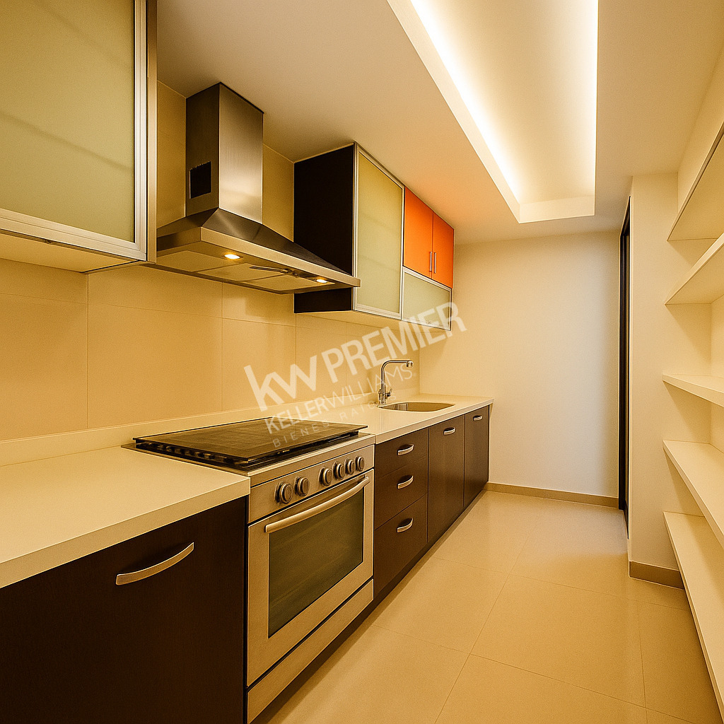 La cocina, equipada con barra de Corian, es el corazón del hogar, perfecta para preparar tus platillos favoritos mientras disfrutas de la compañía de tus seres queridos. Además, cuenta con un práctico patio de servicio con instalaciones para lavadora y lavadero.
