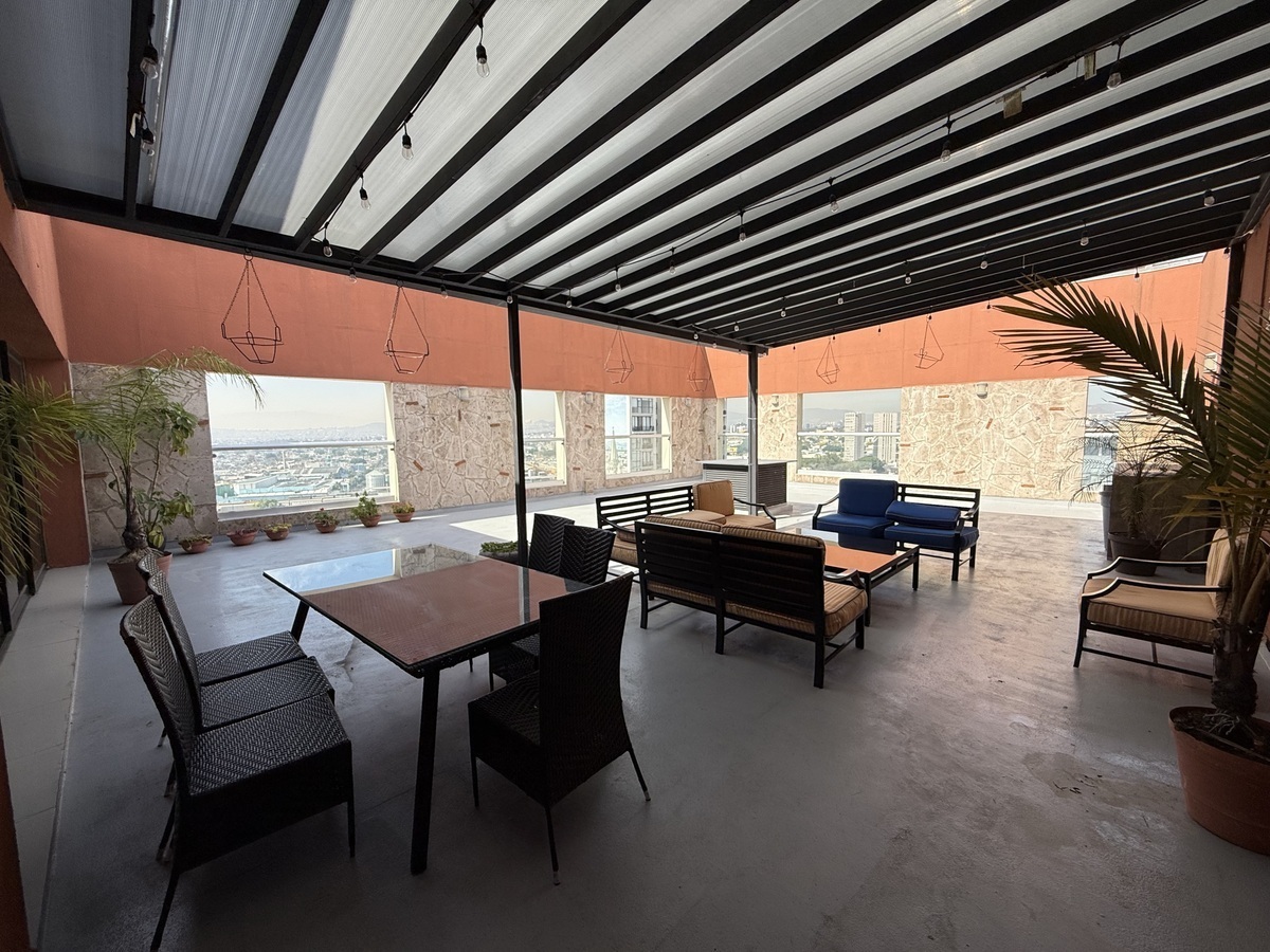 Además, el edificio ofrece amenidades como gimnasio bien equipado, alberca, jacuzzy con camastros, areas verdes, área de juegos infantiles, terraza en roof top, área de eventos, asadores, cajones de visitas, vigilancia 24/7 y acceso controlado